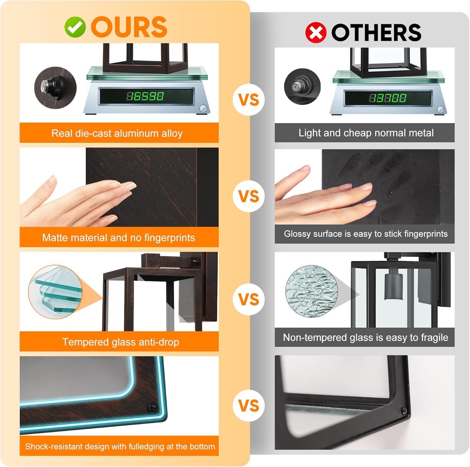 PARTPHONER Dusk to Dawn Porch Light Fixtures, Black Brushed Gold Exterior Lighting Lamp, Sensor Wall Lantern, Waterproof Outdoor Wall Sconce for House Doorway, Garage 2 Pack