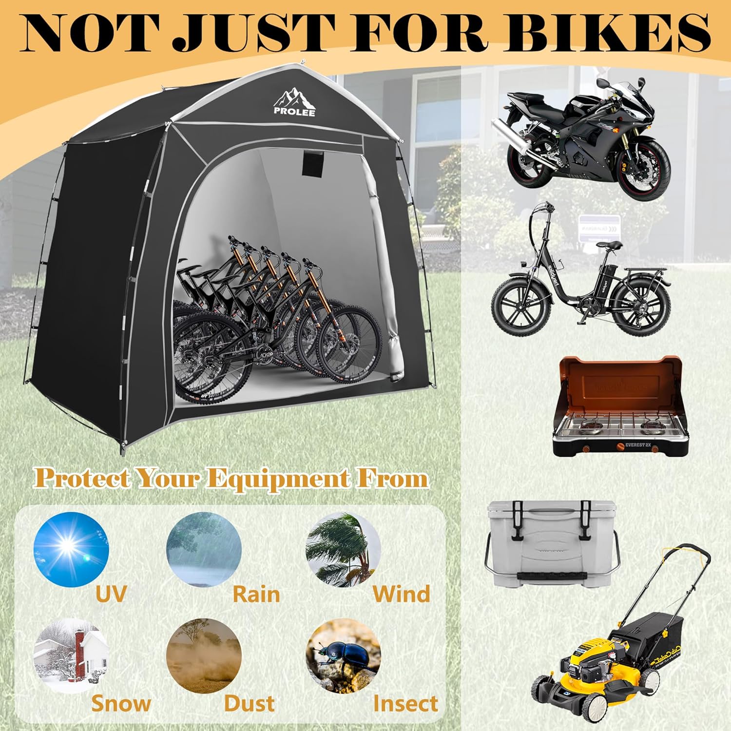 Prolee Bike Storage 7.3 x 5ft, Outside Storage Waterproof Oxford Fabric for 4 Bikes, Bike Shed, Garden Sheds & Outdoor Storage, Black