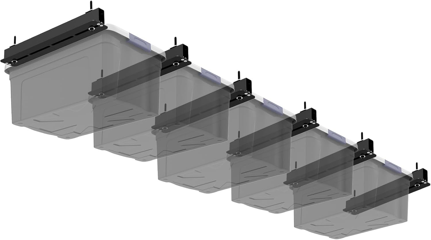 6 Pack Overhead Storage Bin Rack, Ceiling Racks for Utility Bins Organization, Heavy Duty Rack Ceiling Garage Storage for Supports Most Bins Container (for 5 Bins, Bins are not included)