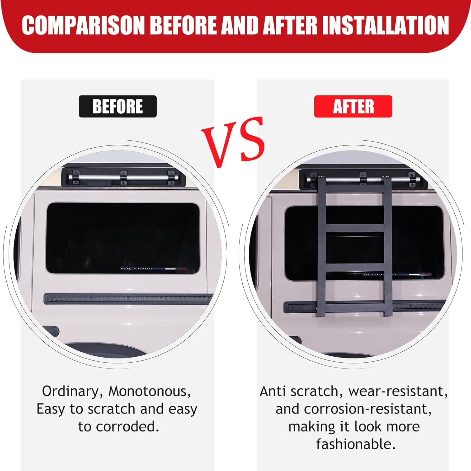 - HIGH QUALITY: The side access ladder roof rack is crafted from metal aluminium alloy, very strong, and rear side window ladder is made to resist fading, bending, and rusting, regardless of driving or weather conditions.