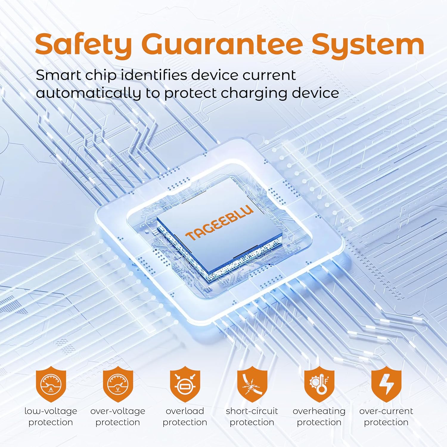 - 【Powerful output】The TAGEEBLU Power Inverter offers a continuous DC to AC power supply of 1000W, converts 12V DC battery power to standard 110V AC, with a peak surge of 2000W during load startup. Conversion efficiency > 92%. It employs advanced high-frequency transformers and features 100% pure copper ultra-flexible cables, ensuring a high level of safety during use