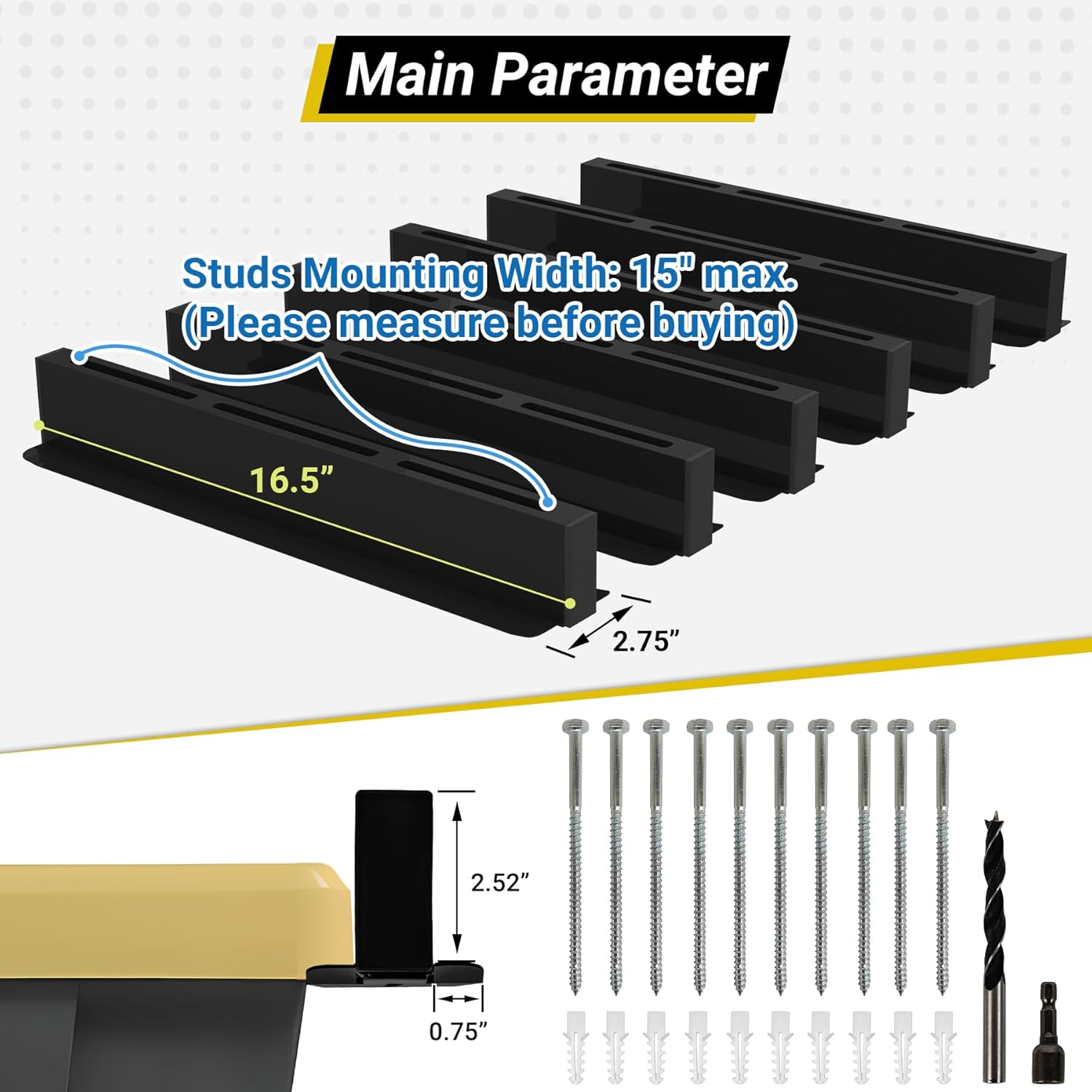 - Expandable T-shaped Design: Our ceiling storage racks feature a unique T-shaped design. The garage ceiling storage hold more boxes if mounted horizontally, so you can buy an extra set for extra storage space ( Product Dimension: 16.6”L x 2.75”W x 2.8”H)