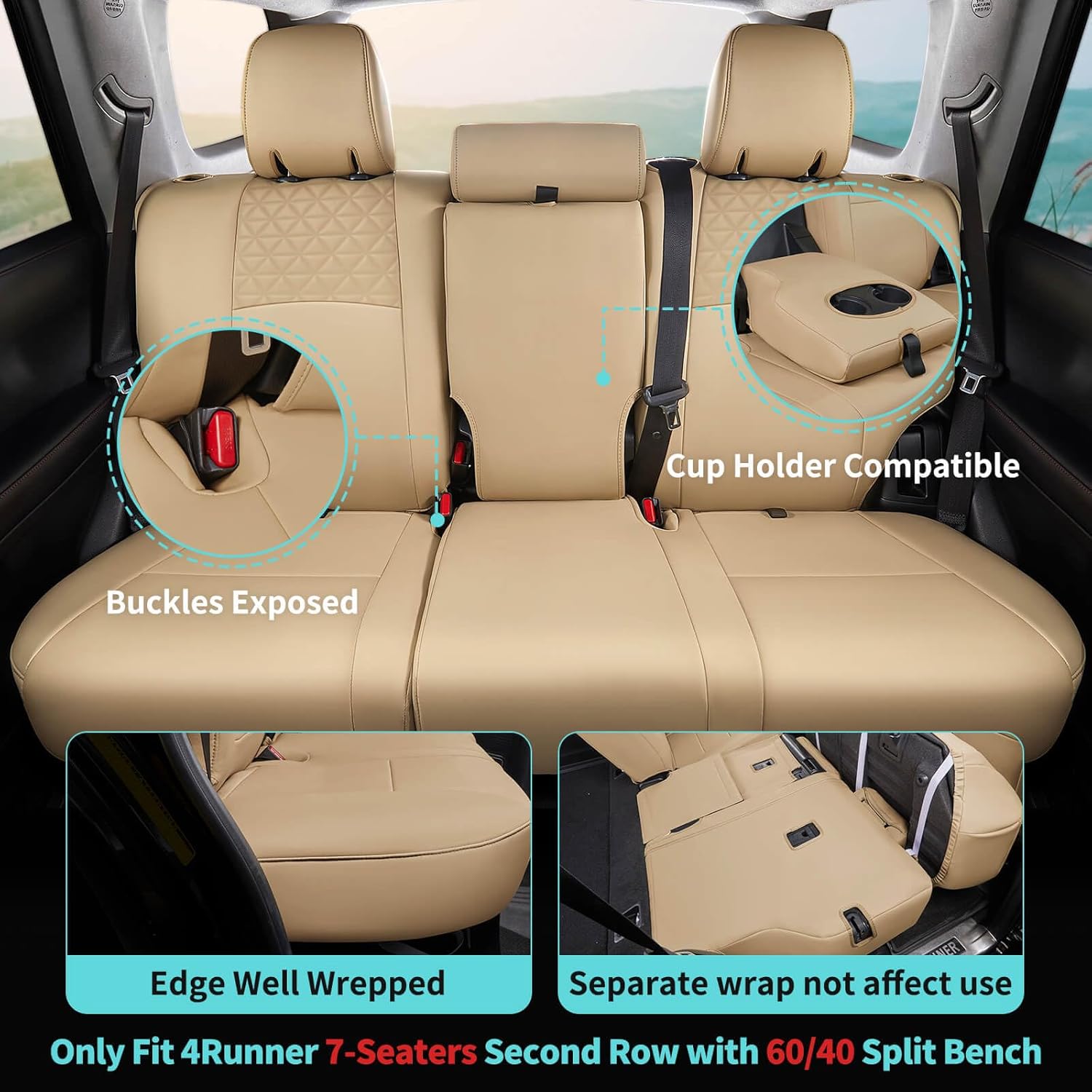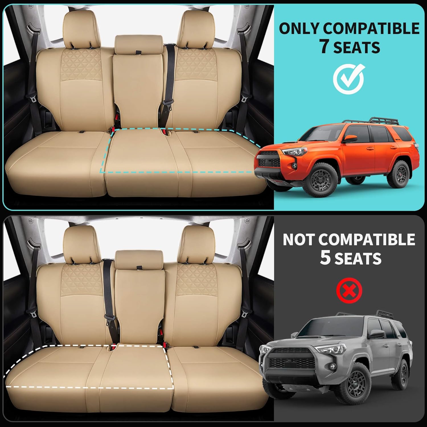 - Compatible with 7 Seats & 3 Rows - Car seat covers are tailored to fit 7-seat and 3-row versions, with a 40/60 split for 2nd row. Fit for 7-seat Toyota 4Runner models from 2011 to 2024, and are not compatible with the 5-seater and 2-row versions.