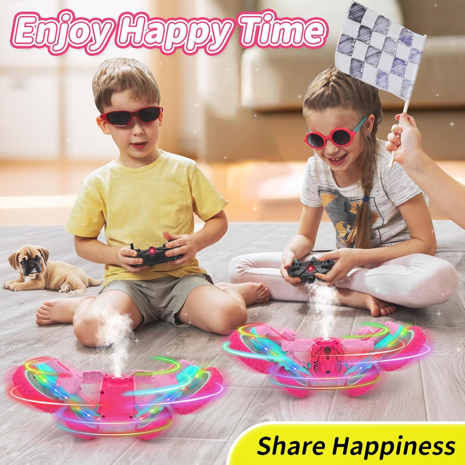 Remote Control Car for Girls, RC Cars 2.4GHz Fast RC Stunt with Strip Light, RC Trucks with Spray 4WD 360° Rotating, Off Road RC Cars Xmas Birthday Gift for Girls (Pink)