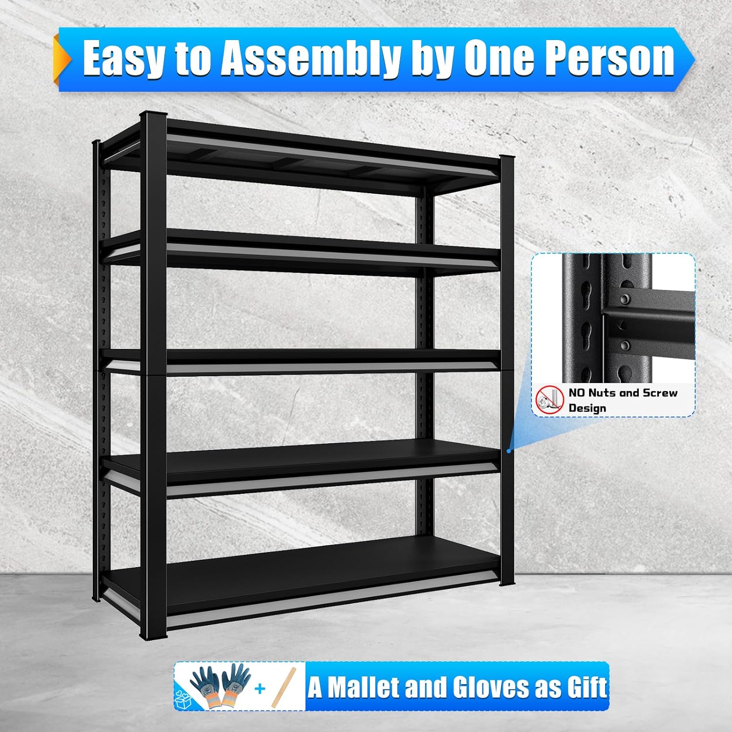 48" W Garage Shelving Heavy Duty,3000LBS Loads Adjustable Garage Storage Shelves,5-Tier Metal Storage Racks and Shelving Units, Utility Rack Shelves,48”W x 24”D x 78”H,Black
