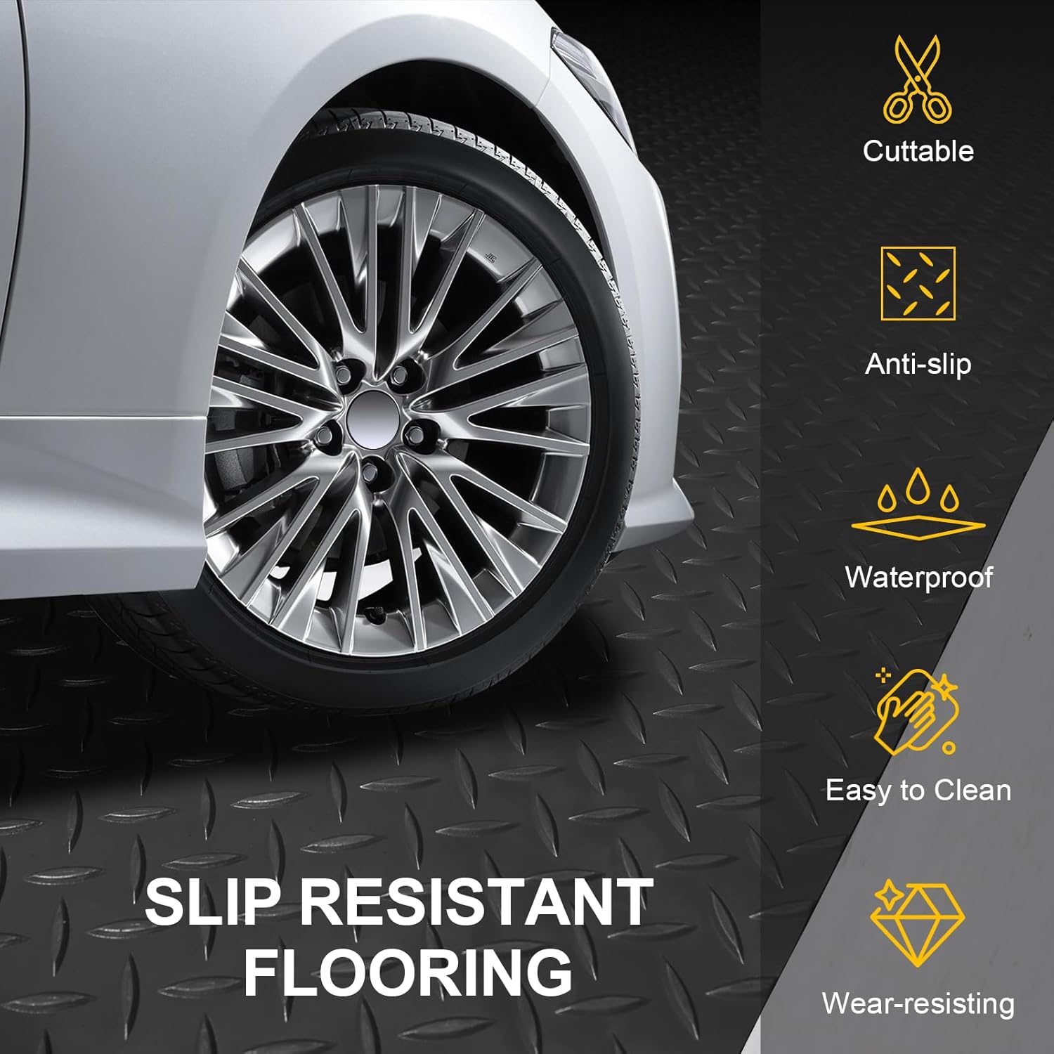 - Waterproof and Anti-slip: The diamond shaped raised pattern on the surface of the mat is specifically designed for anti slip and safe entry and exit. Moreover, due to our excellent waterproof design, the floor mats for garage can prevent the infiltration of dirt and water in rainy days, always creating a dry and clear environment