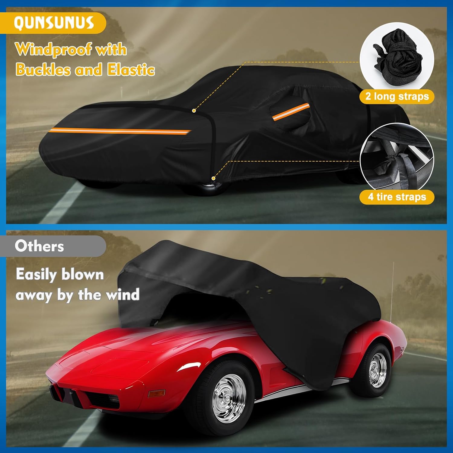 QUNSUNUS 6 Layer Car Cover for C3 Corvette 1968-1982 Waterproof All Weather Windproof for Corvette Car Cover Hail Protection with Zipper