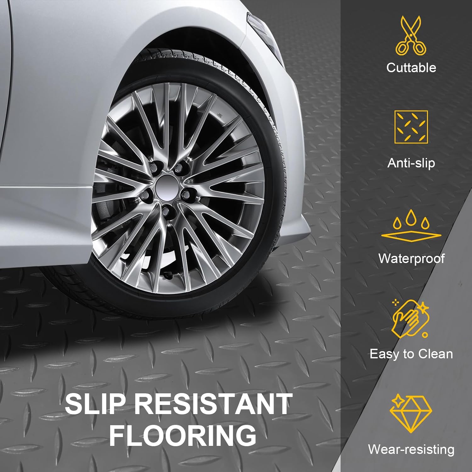 Garage Floor Mat 2.8mm Thickness PVC Garage Flooring Roll Diamond Plate Floor Mats for Garage, Workshop, Gym, Golf Cart Parking or Trailers (Grey, 7.5 x 20 FT)