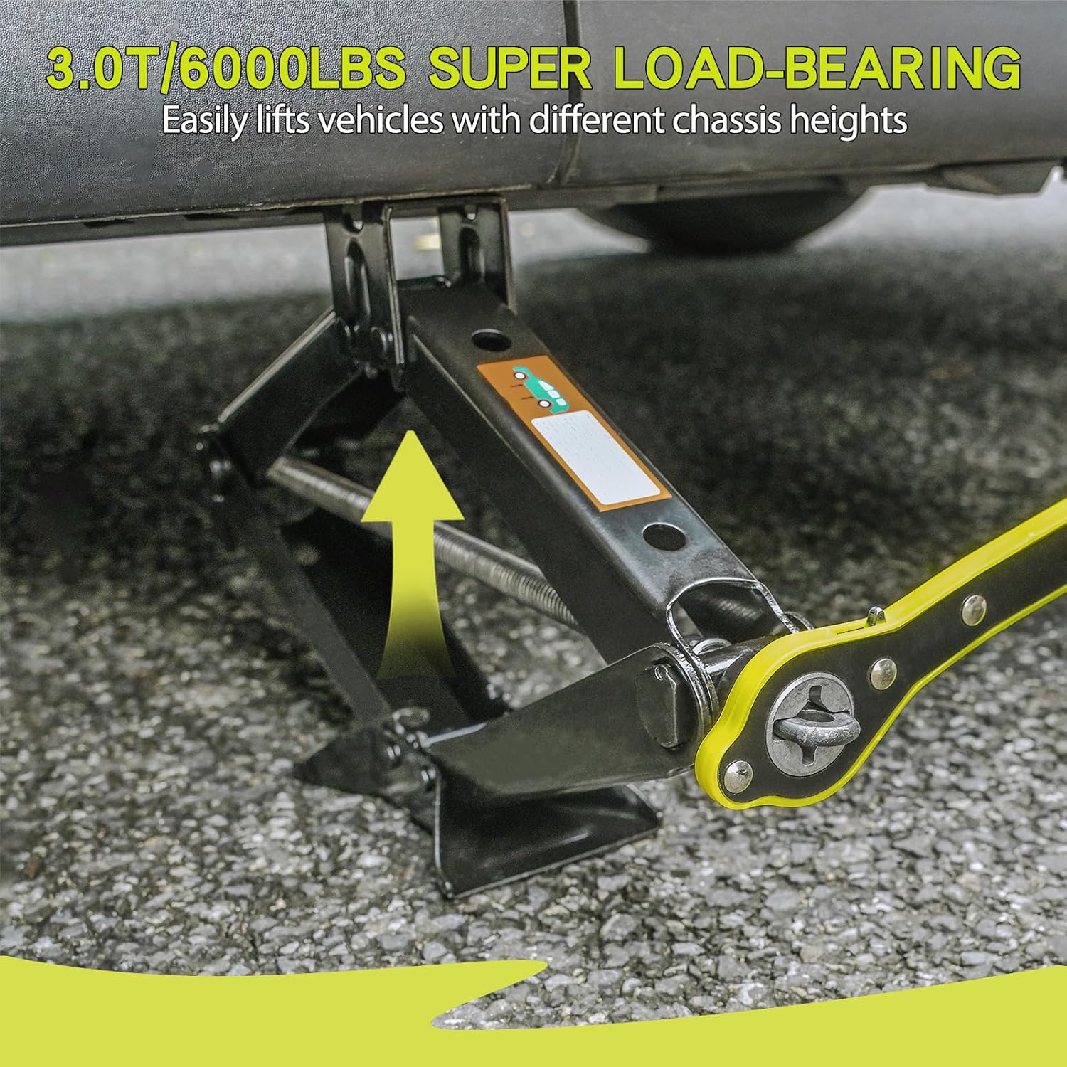 - 1.【Car Jack Kit Capacity】Maximum lifting weight 3 Ton (6,613 lbs lbs),This 3 ton scissor jack Lifting Height Range from 3-3/4" (95mm) to 17.3" (440mm). The scissor jack provides a wider range to reach under low chassis sedans or elevate high-body SUVs effortlessly. More convenient and accessible 3 ton portable car jack kit
