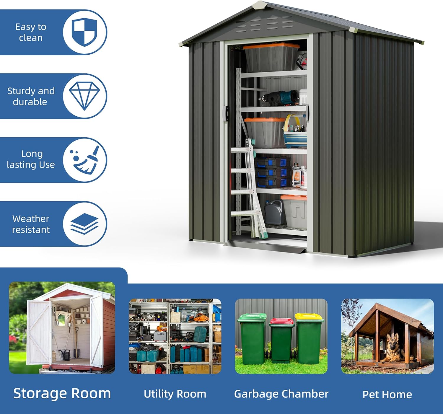 JY QAQA 5x3 FT Metal Outdoor Garden Storage Shed,Waterproof Metal Garden Sheds with Window and Lockable Double Door,Weather Resistant Steel Tool Storage House Shed forPatio,Lawn
