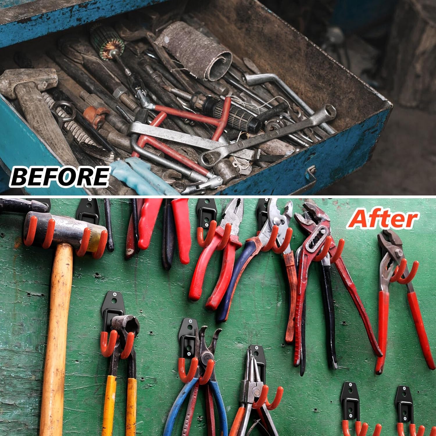 - MULTI-APPLICATION:The garage organizer hooks are ideal for storing and organizing a wide range of items, including ladders, garden tools, power tools, bikes.The Hooks can also be used in garages,workshop, shed, shop, warehouse, basement.Save more your storage space.Housewarming gift