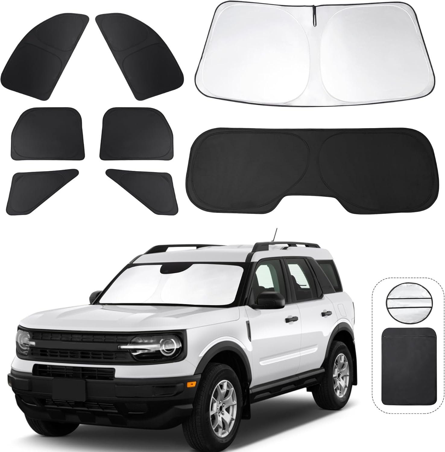 - Customized Design:The sun shade custom fit for Ford Bronco Sport 2021 2022 2023 2024 2025.Our window shade is according to the car size design,perfectly fit your car and does not need to trim.windshield sun shade solve the problem of light leakage and incompatibility of the old umbrellas.The sunshade designed for Ford Bronco Sport.