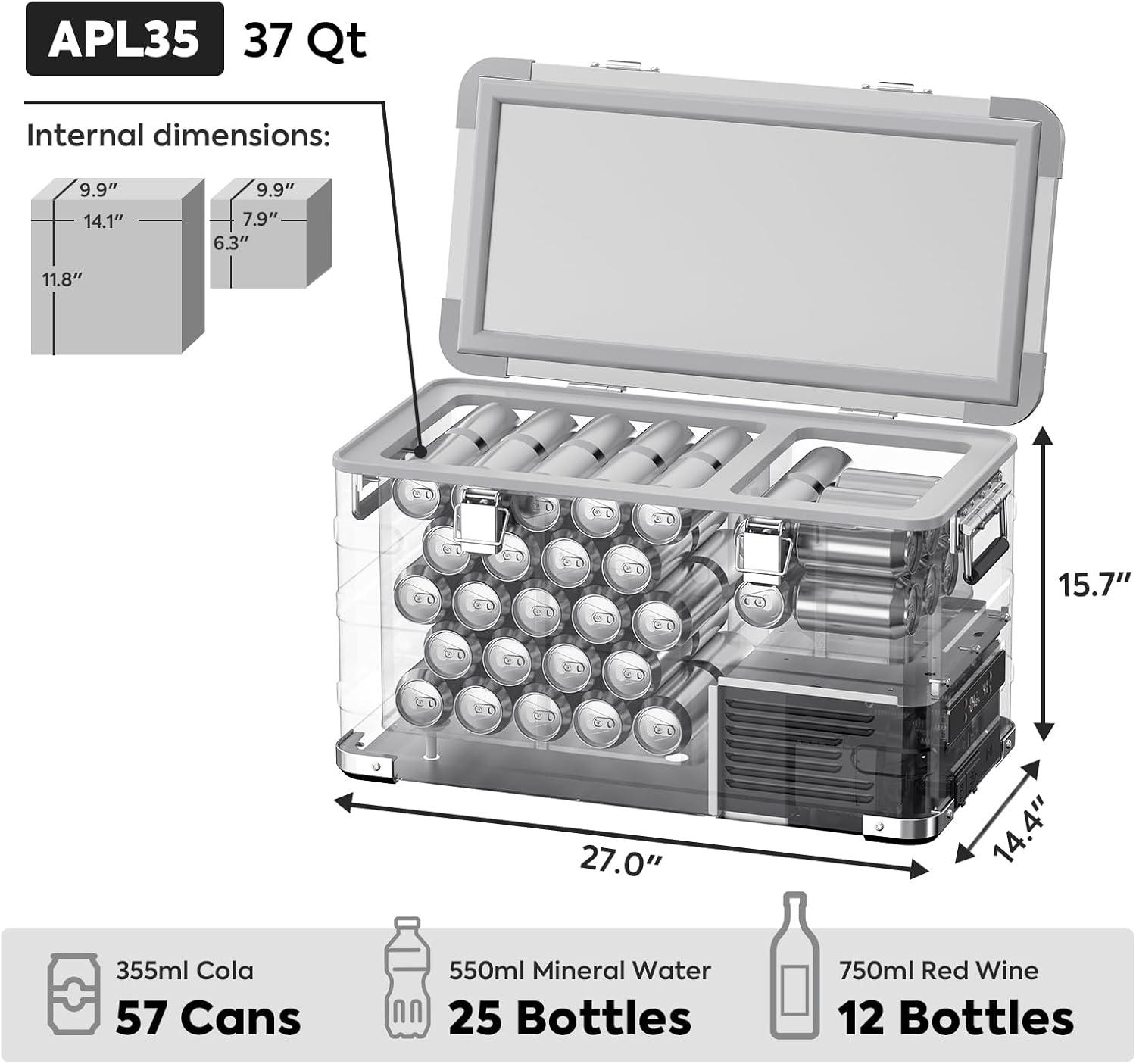 ICECO APL35 12 Volt Car Refrigerator, 37 Quart (30 Liter) Light Duty Aluminum 12v Portable Fridge Freezer, SECOP Nano Compressor, -4℉~68℉, 12/24V DC, 100-240V AC for Outdoor, Camping, RV, Truck, Boat