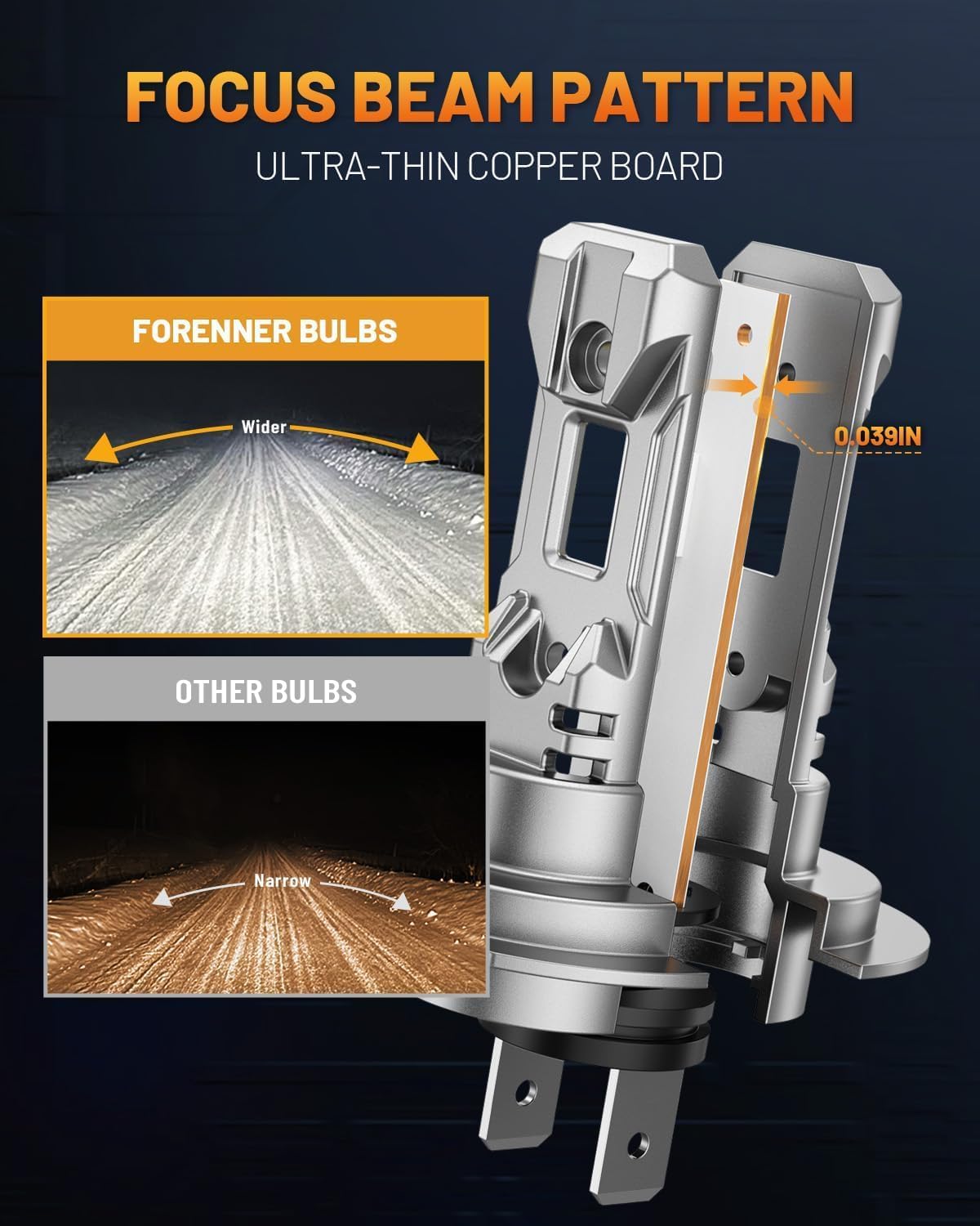 - 【Huge Improvement in Visibility】Forenner H7 fog light bulbs are equipped with Latest chips which provide 600% brighter than OEM bulbs, allowing you to see farther and react sooner. 6500K cool white light provides more comfortable and safer lighting.