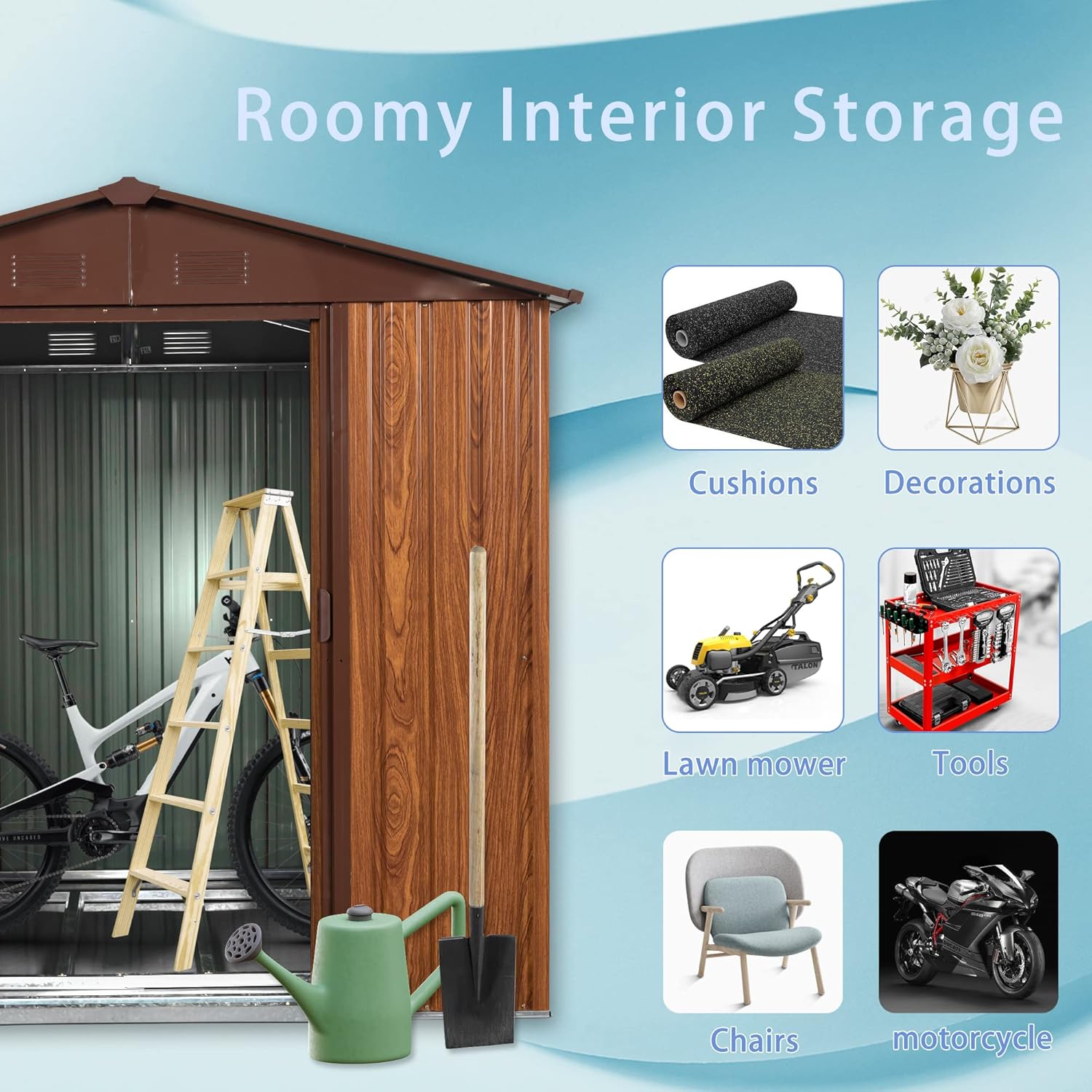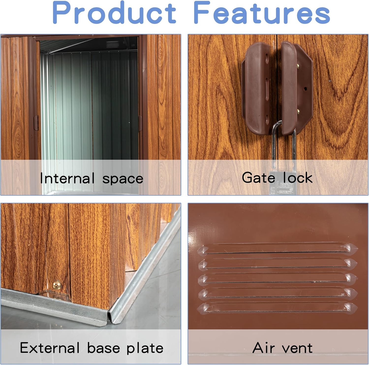 - [Free Giving] Metal Foundation,Anchors,Hooks,Shelf,Locker(padlock),Gloves Easy-build shed made of Electro Galvanized Steel treated for strong corrosion resistance. UV resistant steel panels protect against rot, insects, and extreme weather conditions.