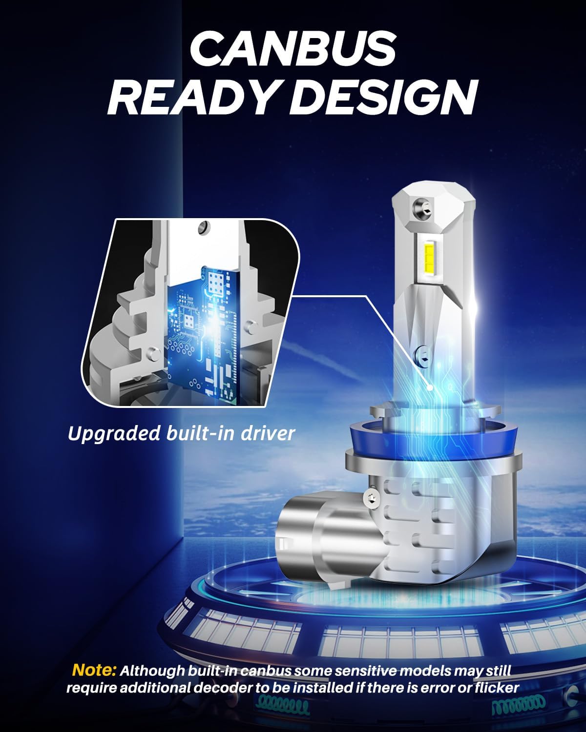- 99% Compatibility - The built-in driver of h11 fog lights adopt upgraded technology, not only has a more intelligent temperature control system but also applies to 99% of vehicle without error, flickering or radio interference. NOTE: For few models, computer system may be sensitive and will display an error message or flicker for any aftermarket bulbs