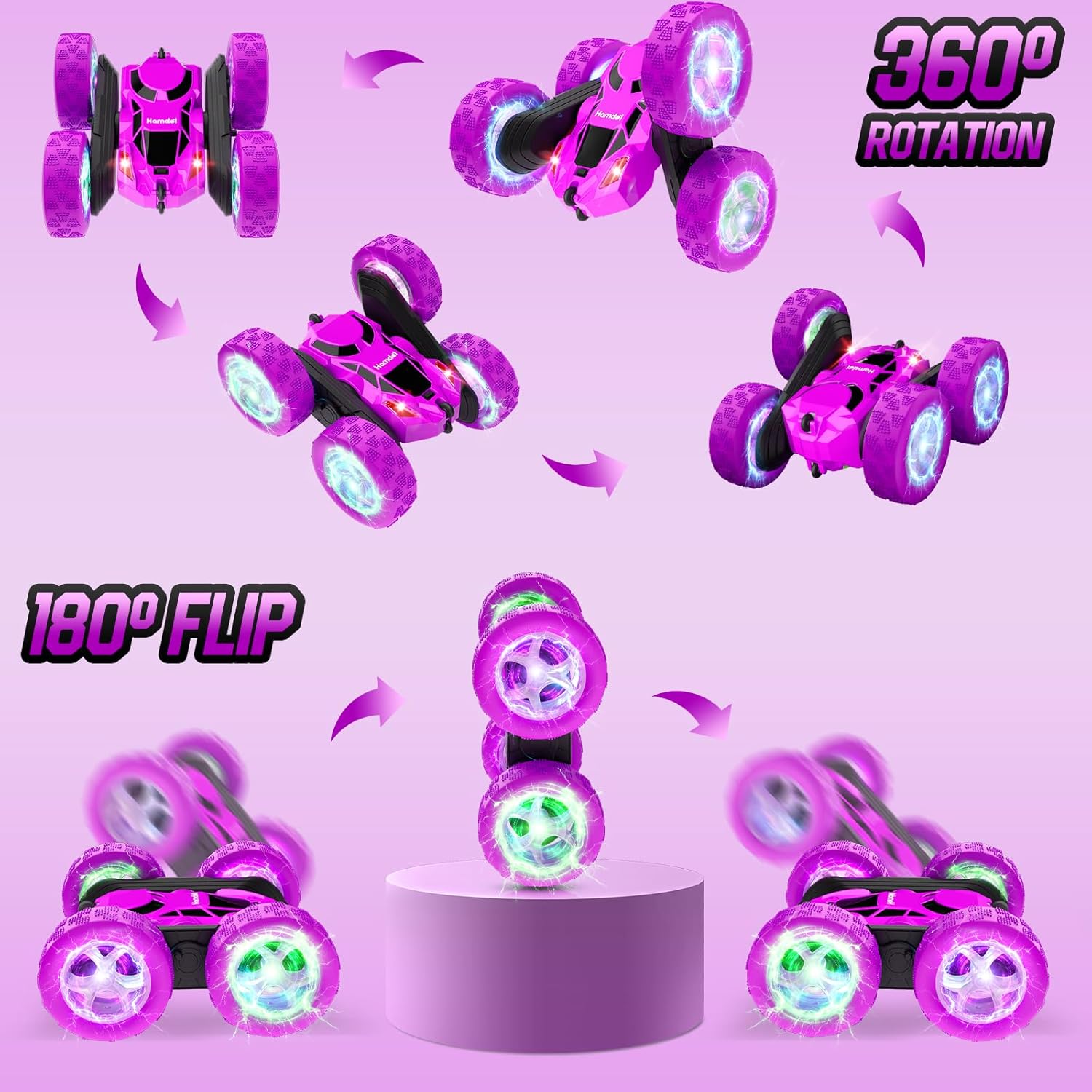 Remote Control Car for Kids Stunt RC Cars with Cool Wheel Lights Double-Sided Driving 360-degree Rotation Boys Toys for Ages 6 7 8 9 10-12 Kids Gift Ideal(Purple)