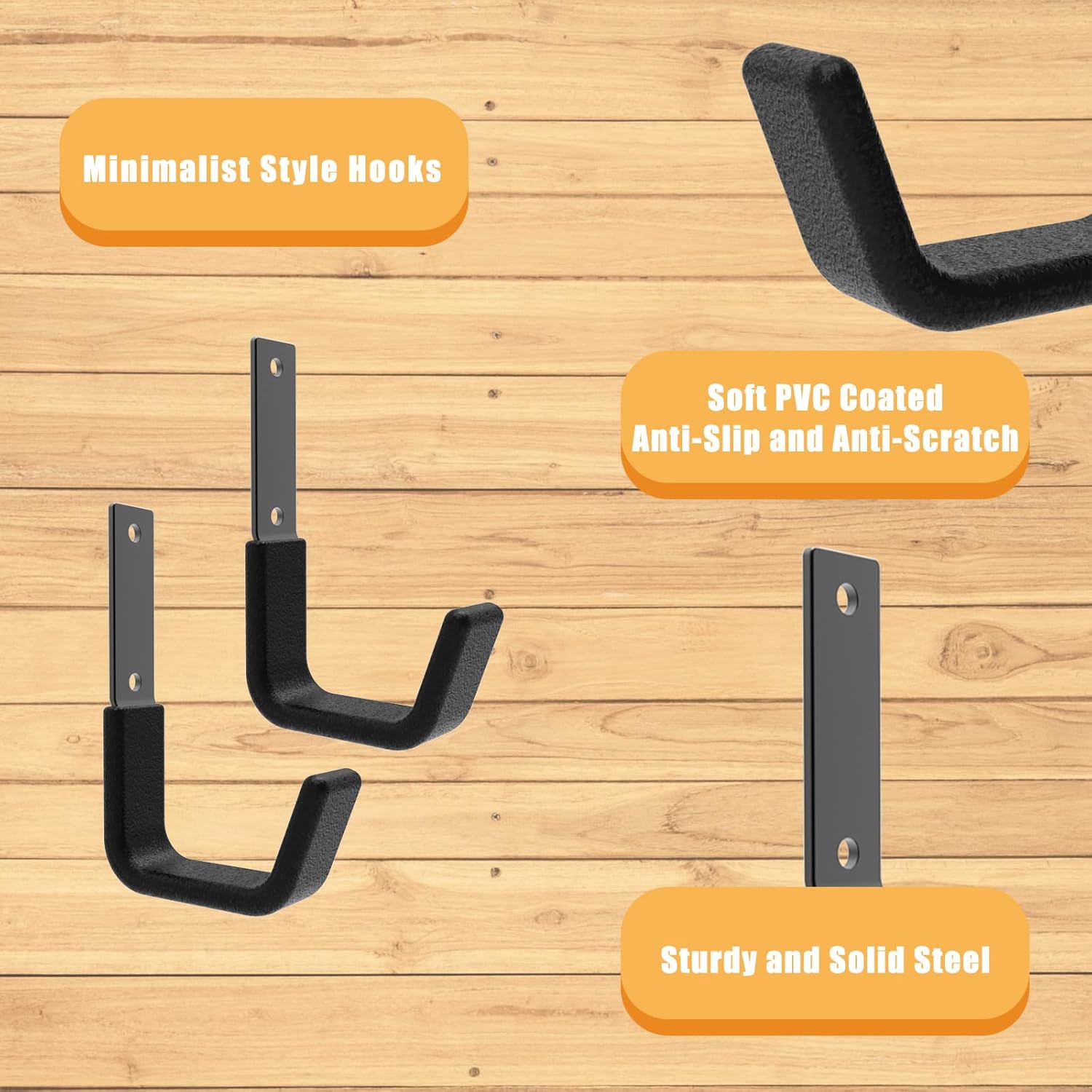 - Easy to Use: Each garage wall utility hooks comes with two pre-drilled holes and two set screws & anchors for easy installation. It fits most wall surfaces. To solve the storage with a minimum of wall space