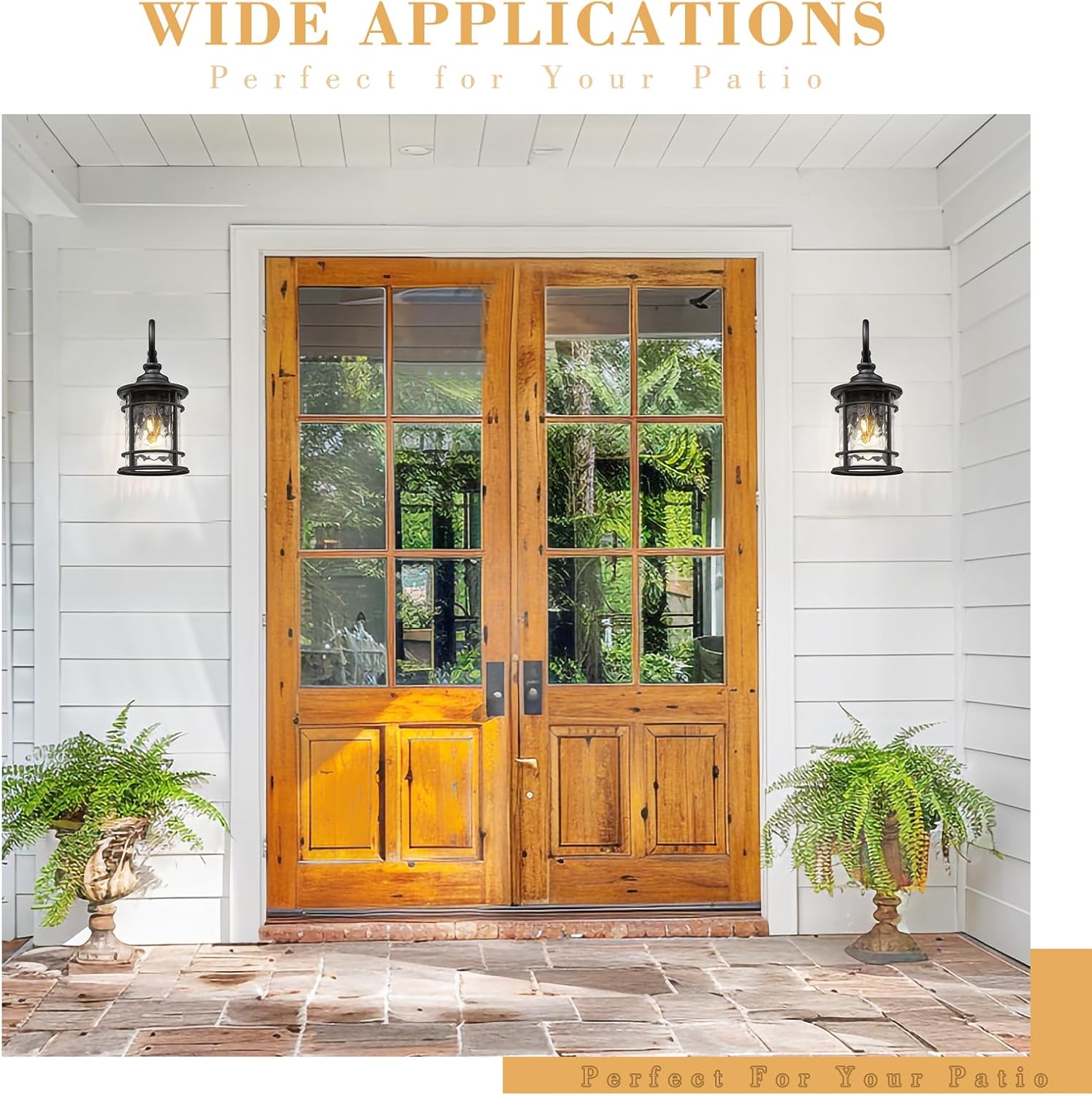 Emliviar Farmhouse Outdoor Light Fixture, 15.5" Exterior Lighting Fixtures with Water Ripple Glass, Die-Casting Aluminum in Black Finish, XE229B-WG BK