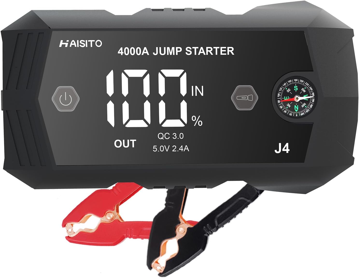 - 【ENSURE SAFETY】Haisito jump box uses safer materials and a more intelligent chip design, with a focus on safety during use. It is equipped with an intelligent clip to effectively prevent sparks when connecting the battery. Please start the machine after connecting the battery to ensure safe charging and provide protection for both the user and the vehicle.
