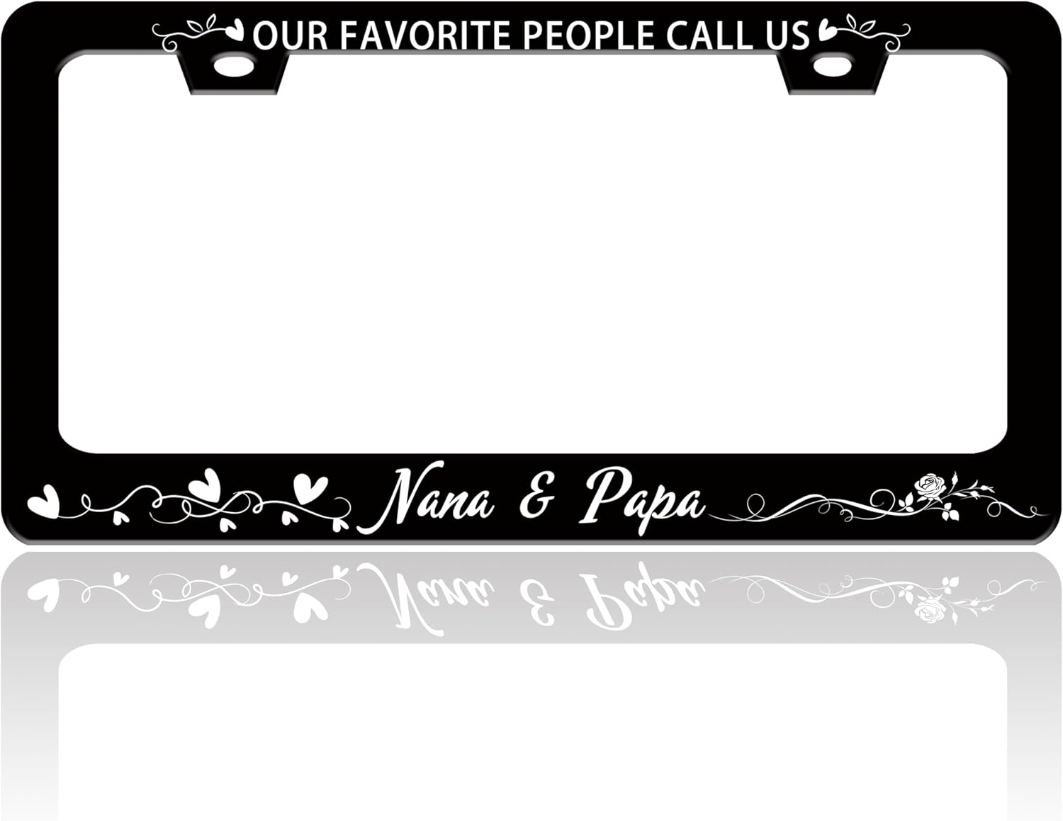 Our Favorite People Call Us Nana and Papa License Plate Frame Funny Stainless Steel License Plate Holder for Front or Rear Car Tags for Car Decoration Accessories with Screws 6.3 X 12.2 for Women Men