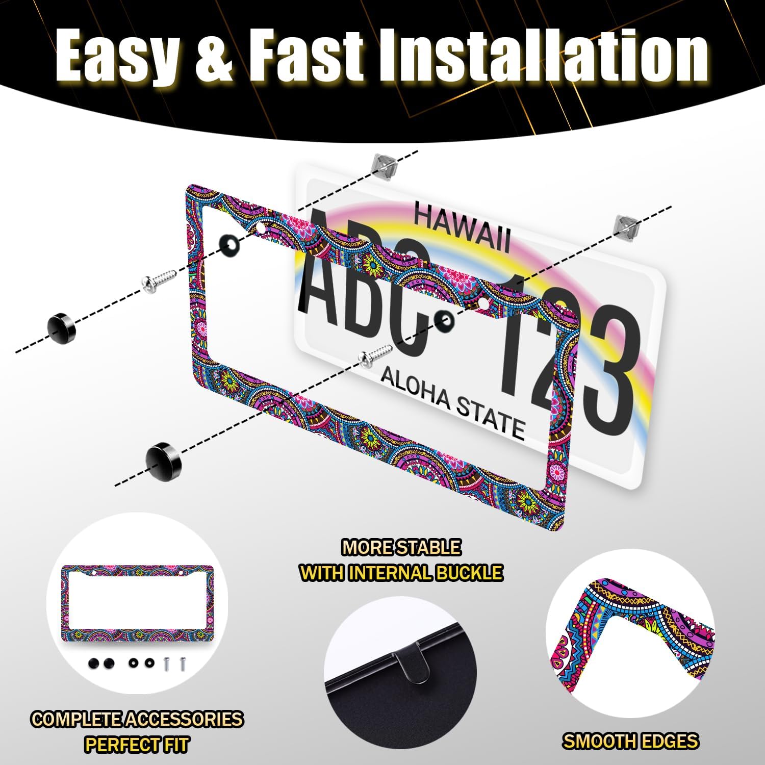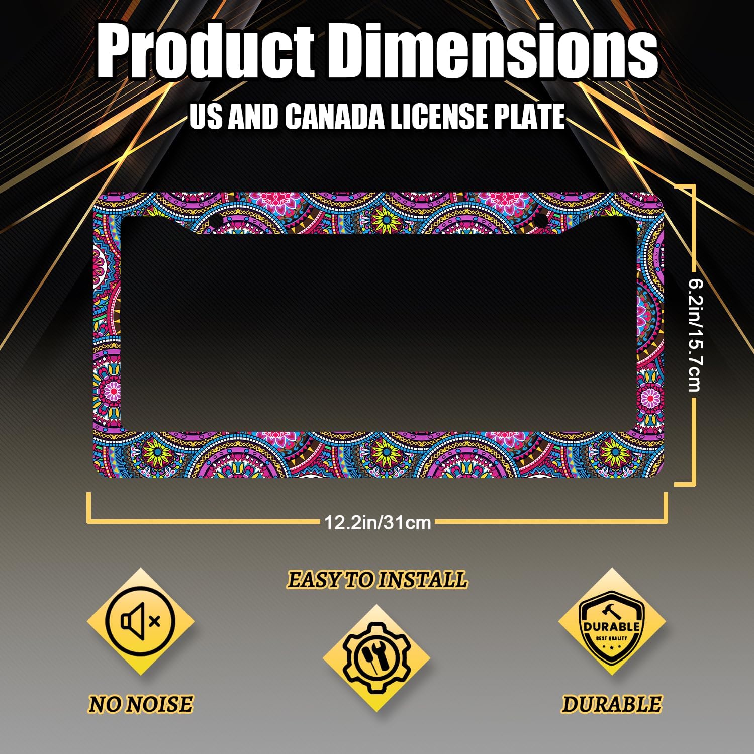 Purple Mandala License Plate Frame Hippie Boho License Plate Holder Stainless Steel Front and Rear Car Tags Auto Parts Funny License Plate Decoration with Screws for Men Women s 12.2"x 6.2"