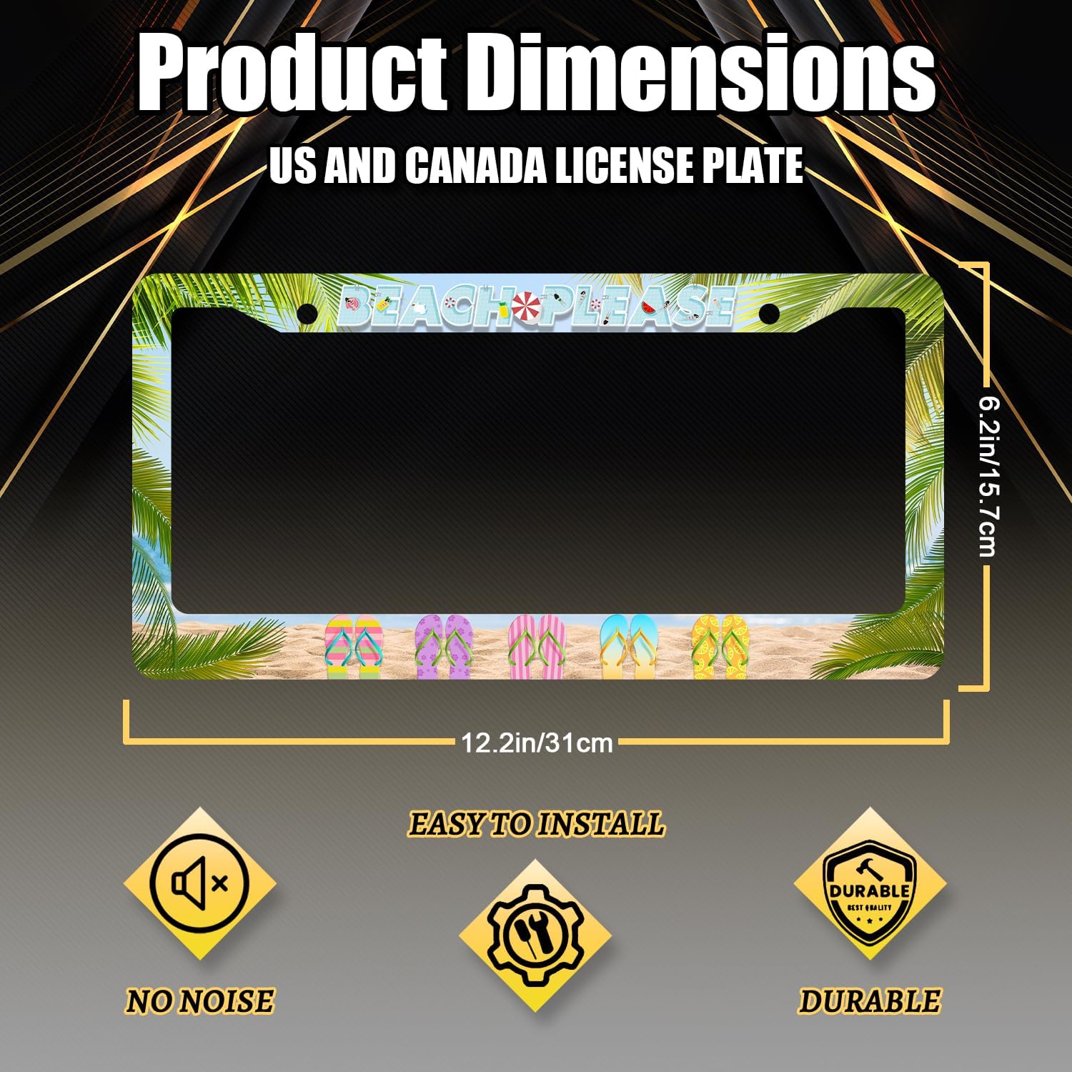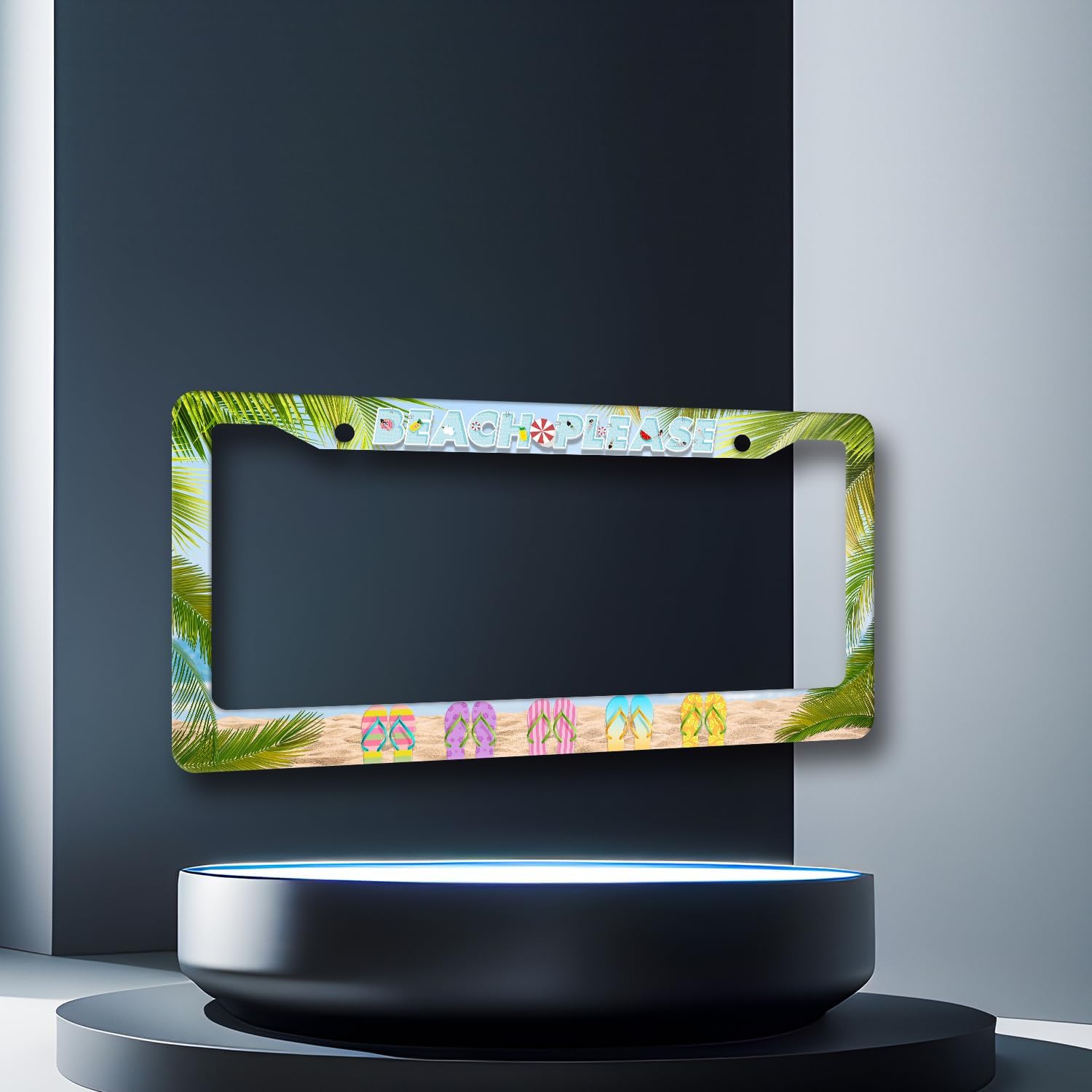 Beach Please License Plate Frame Hawaii Flip Flops License Plate Stainless Steel Auto Parts Funny License Plate Holder Men Women Decoration with Screw License Plate Holder 12"x6"