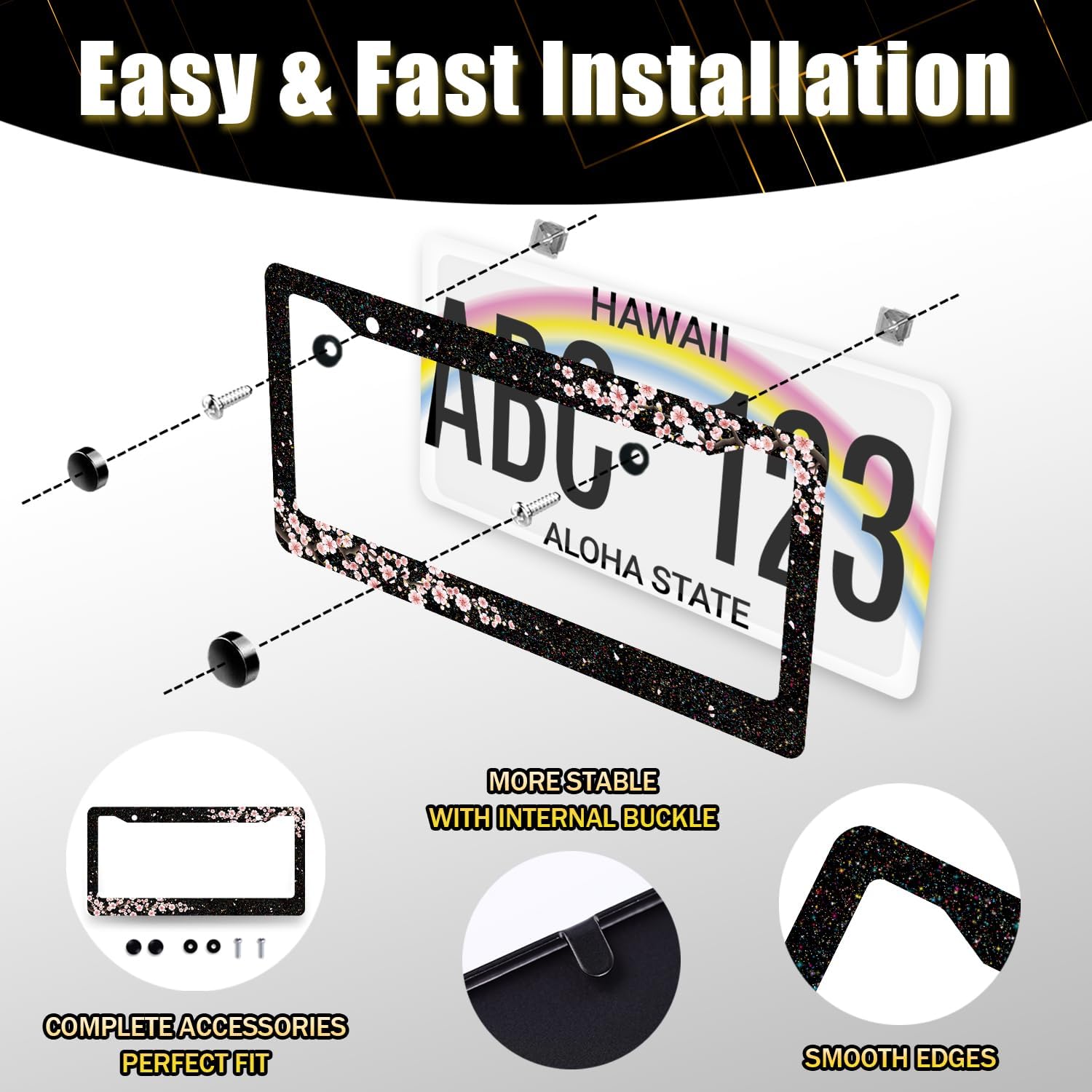- This license plate Frame with holes, including Accessories: screws, nuts and washers. Easy to install.you don’t need to buy any other hardware or fasteners. Anti-theft caps are also included