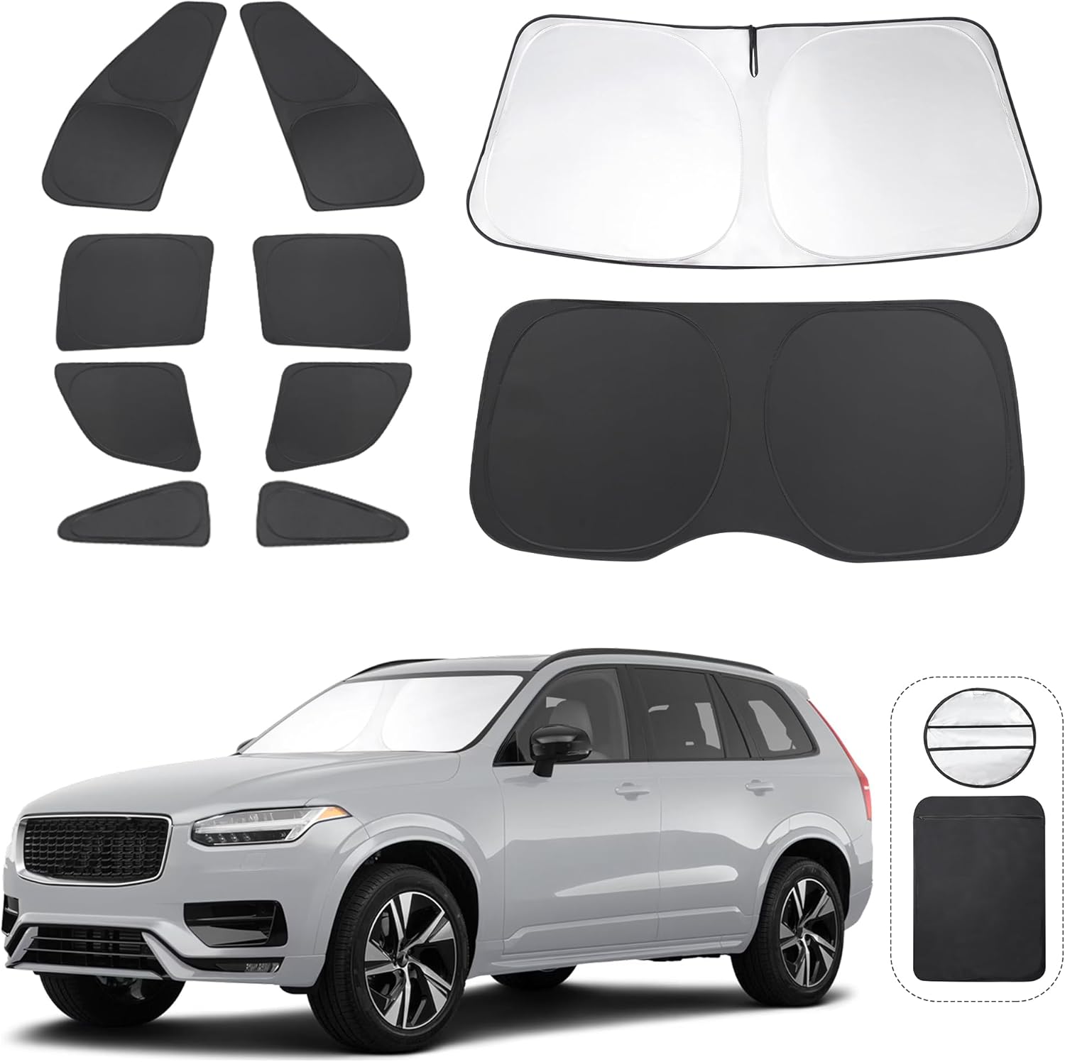 TINGLU Window Shades for Volvo XC90 2016-2024 2025 Accessories Car Side Full Windows Rear Triangular Windshield Sun Shade Sun UV Rays & Privacy Protection for Camping,Napping,and Relaxing 10PCS