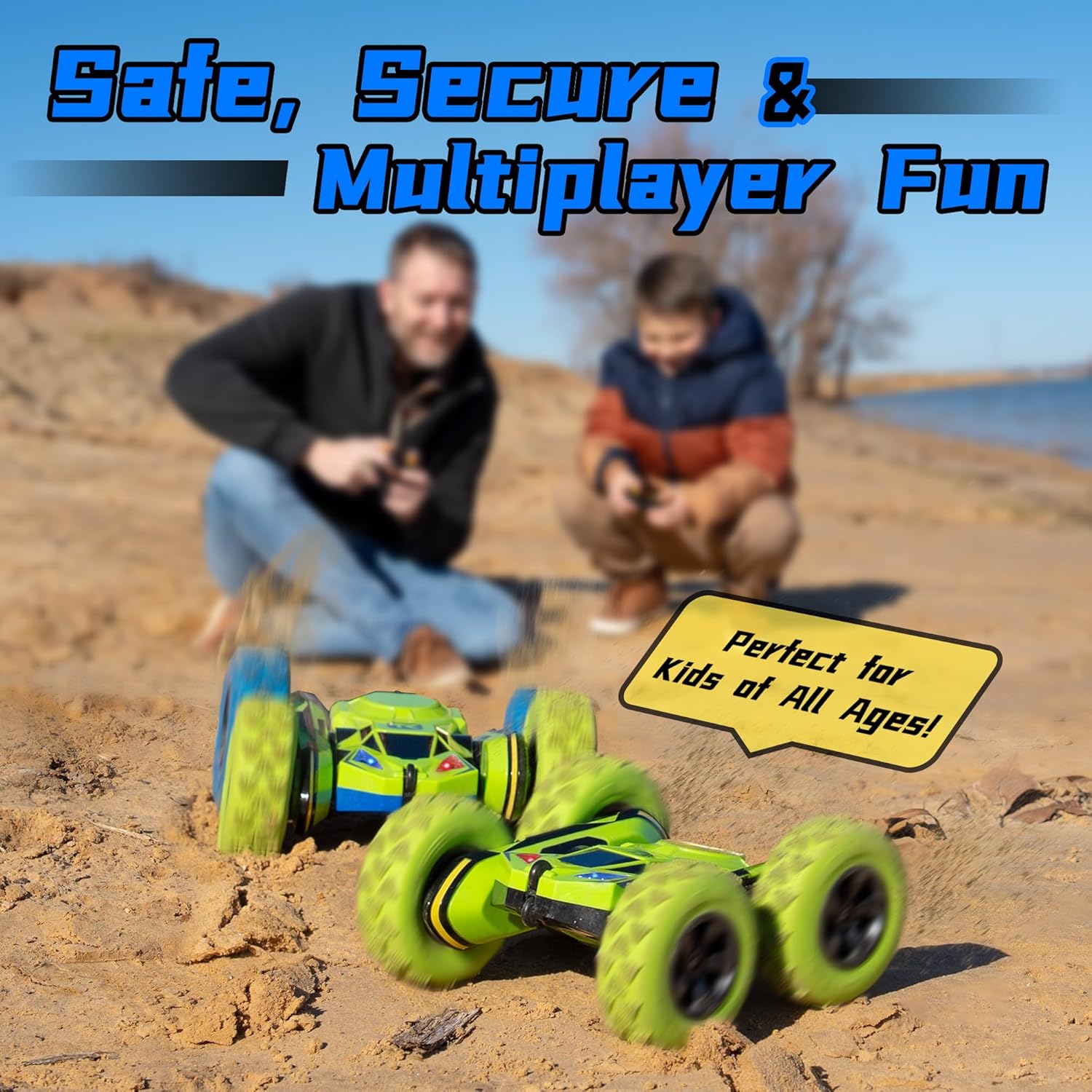 - Race up to 6 cars at a time,NO Problem: The fully functional RC stunt car features a dual-joystick controller with 2.4 GHz frequency, has good anti-interference performance, allows to race up to 6 trucks at a time, and provides a range of up to 160ft.