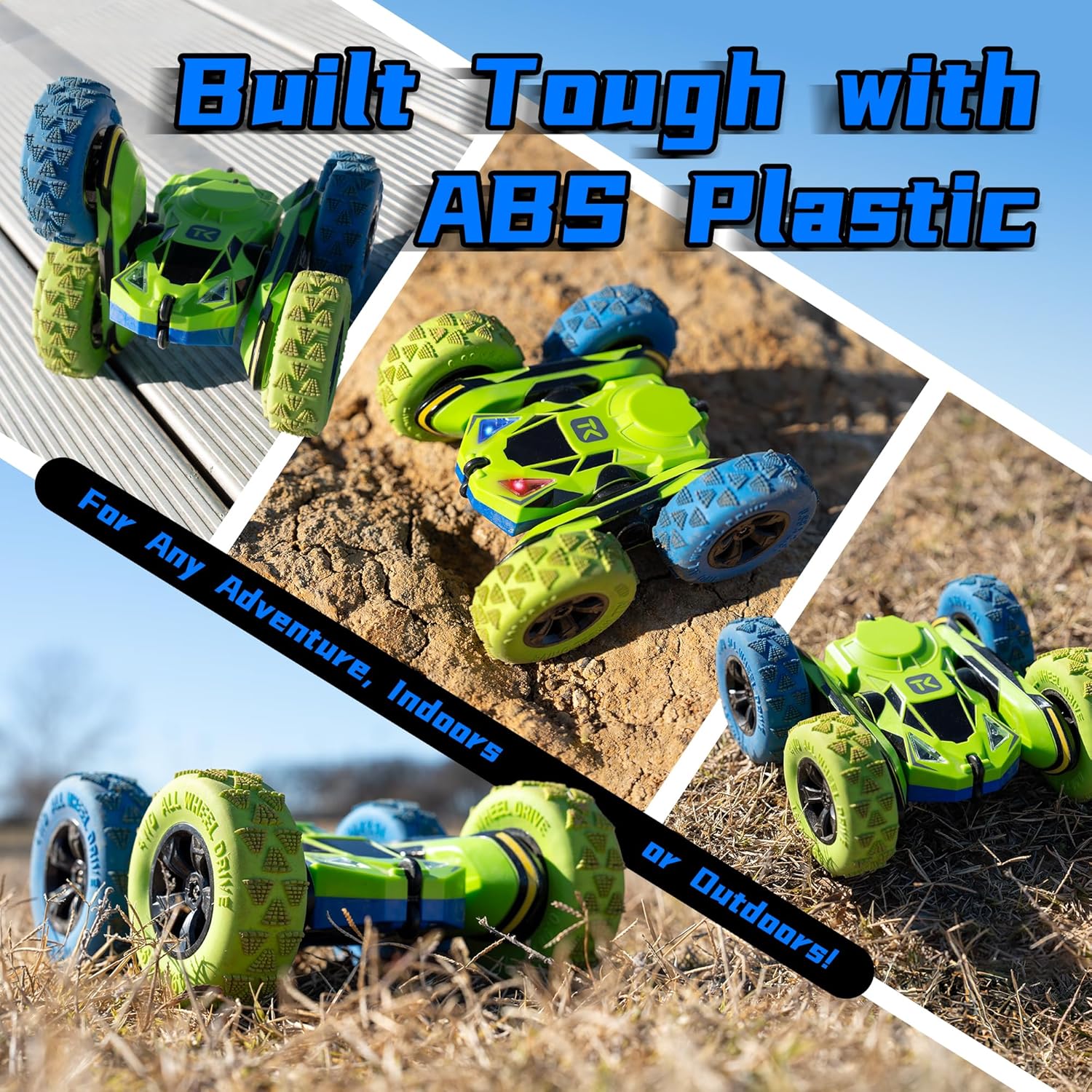- POWERFUL & EXCITEMENT: Equipped with the powerful electric motors to get Instantaneous explosive power, with high-quality tires (shock absorption, strong grip, anti-skid), will have power, excitement, attitude and action to take the stunt car anywhere.Whether we are indoors or outdoors, let's go.