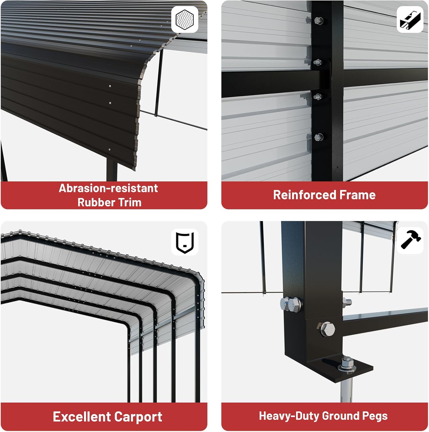 Metal Carport 13 x 20 FT with Heavy Duty Frame & Galvanized Steel Roof, Metal Car Garage, Sturdy Canopy Shelter for Car, Truck, Pickup, SUV, Tractor, and Boat
