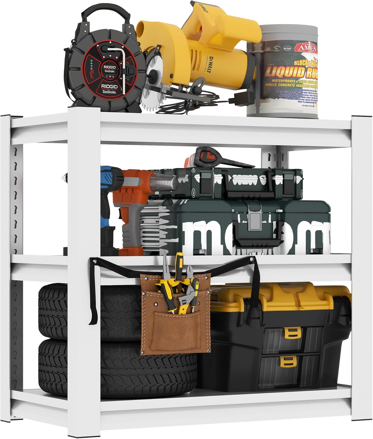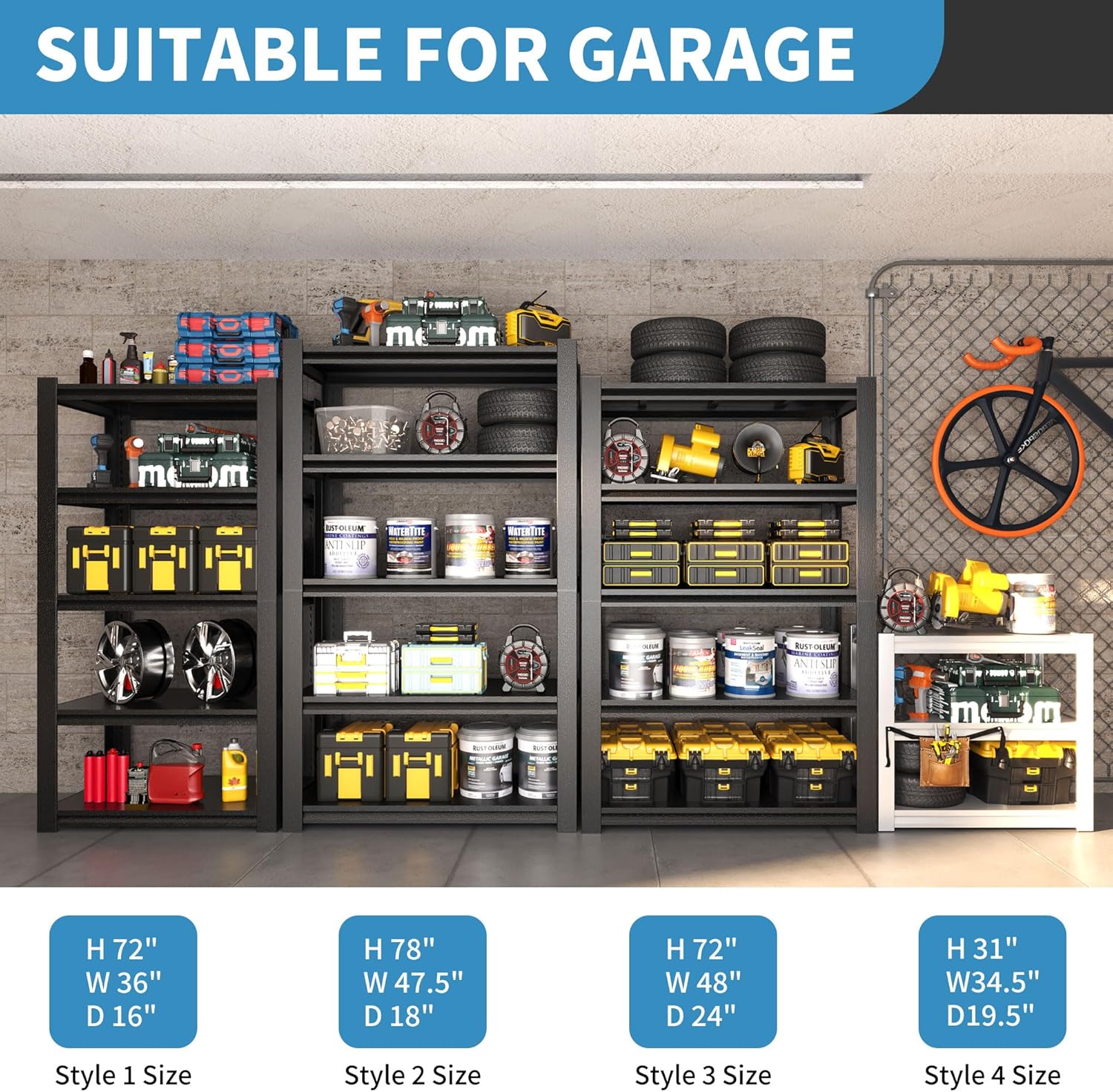 - Adjustable and Detachable Metal Storage Shelves:The adjustable dividers can be adjusted to different heights according to the size of your items, making it more convenient for your storage. You can also used as a workbench or as a garage storage shelf according to your needs. This metal shelf is suitable for garage/storage room/tool room/kitchen/bedroom/dining room/laundry room