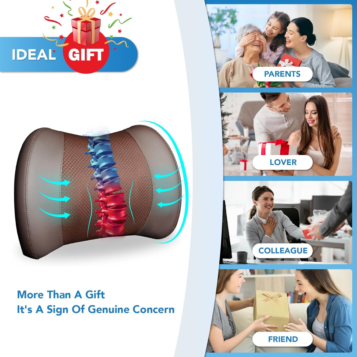 Lumbar Support Pillow for Car, Memory Foam Lumbar Pillow for Lower Back Pain Relief - Back Cushion for Driving, Chair Support for Car-Office Chair, Wheelchair - Brown