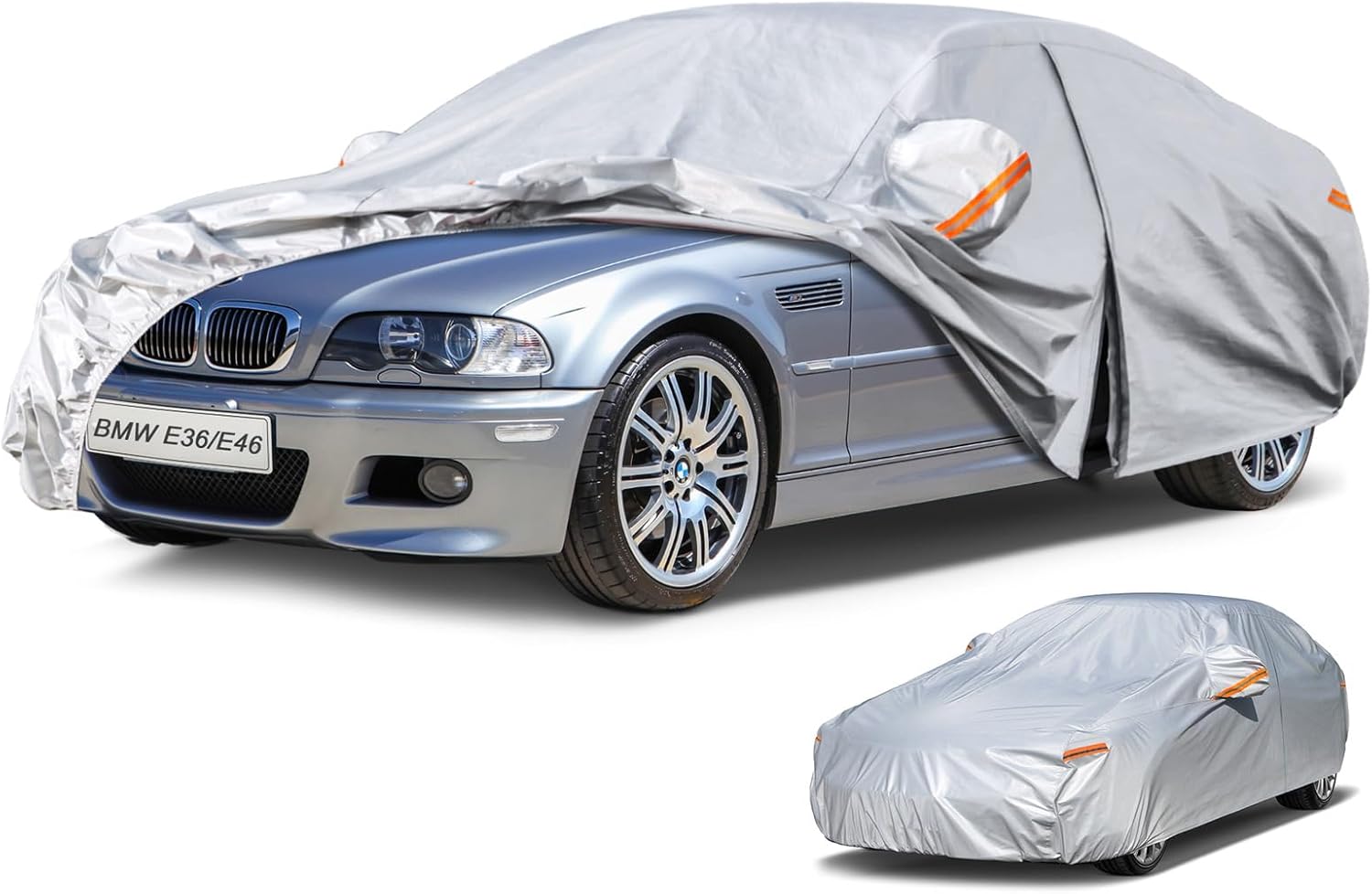 Kayme 6 Layers Car Cover Waterproof All Weather, Outdoor Car Cover UV Rain Sun Protection, Universal Fit for BMW E46 E36 E30, Dodge Neon, Mitsubishi Mirage, Nissan Versa (Up to 177 inch).