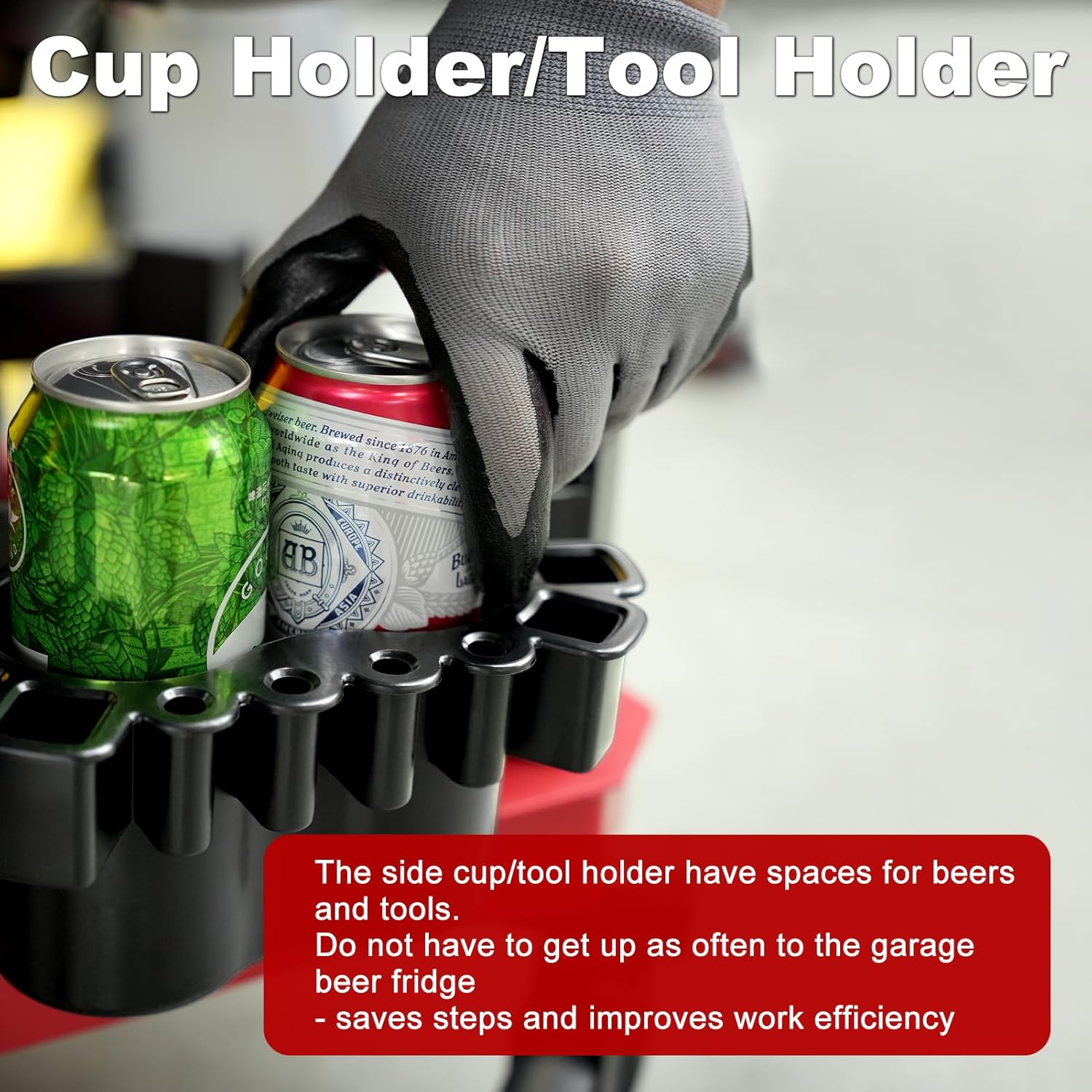 - 【ONE tool tray & TWO cup holders/tool holders】The garage stool has a very good storage function. There is a tool tray and two cup holders/tool holders. At the same time, the tool tray is equipped with a small partition space. You can put small tools like screws here. When you move, do not worry about the screws slipping out of range. It is convenient to store and access necessary tools and parts at anytime