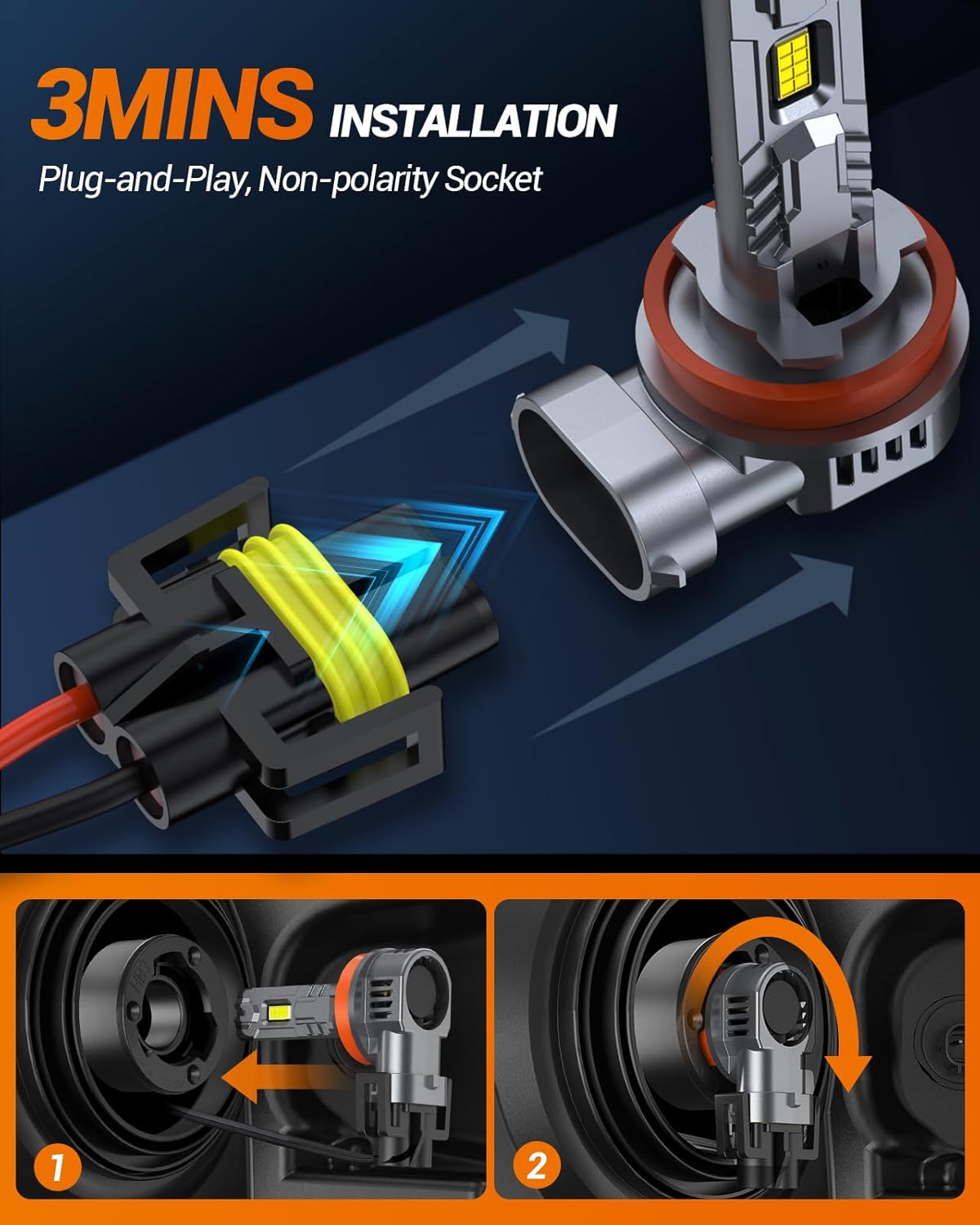 - Wide View And Safer: The S2S 9005 H11 fog bulb is equipped with advanced smart IC drives with radiating distances of 1600F, 90000 lumens and 6500K cool white, ensuring a clearly visible driving experience at night. Made of high-speed cooling fans and single copper tubes, our bulbs keep low operating temperatures and provide reliable performance at night for longer life of over 60,000 hours.