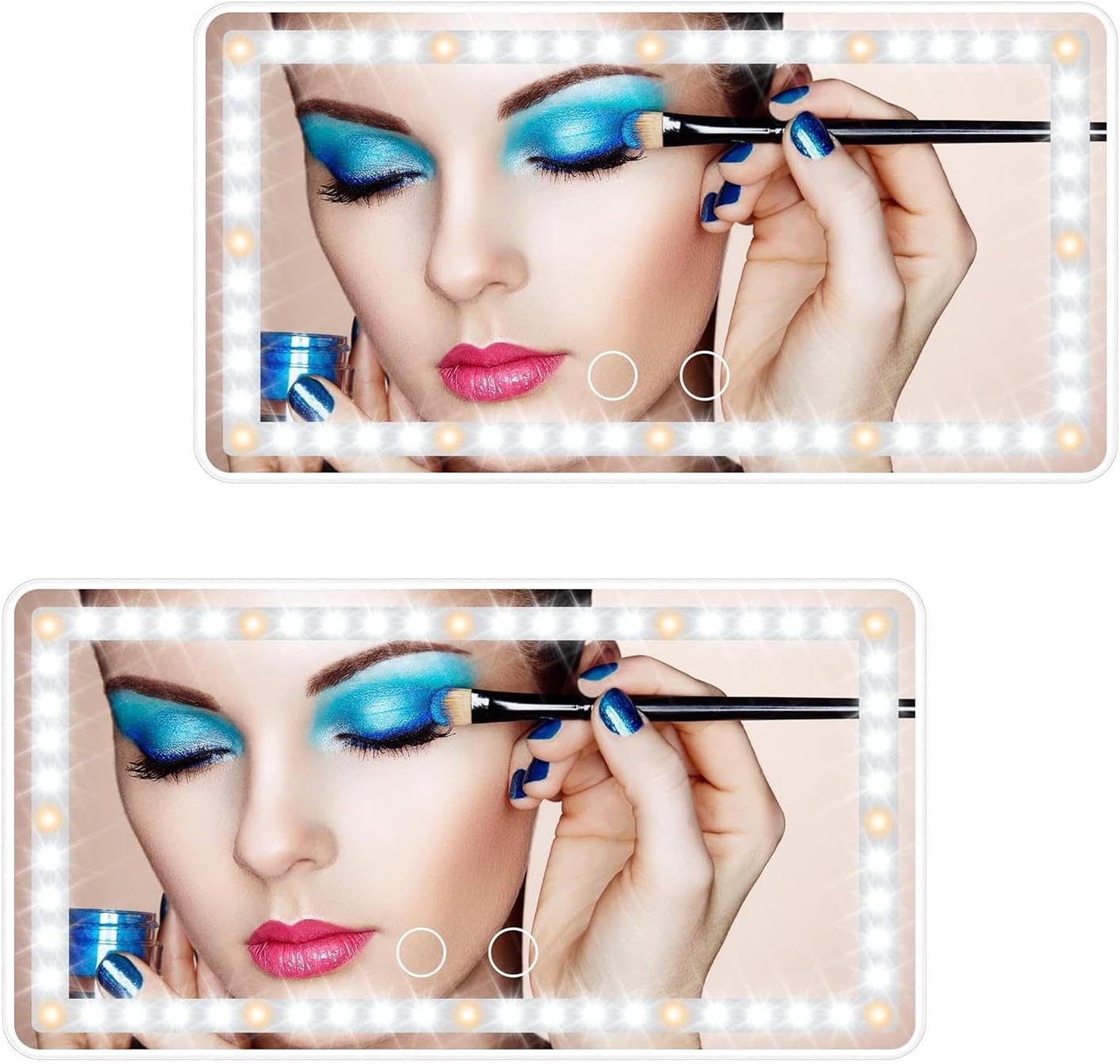 - 【DIMMABLE BICOLOR LED LIGHTS】-The car makeup mirror has 12 yellow lights and 48 white lights, which is 40% brighter and 60% less energy than normal bulbs. Short press the 2 sensor switches to replace 3 light colors: white, yellow, white and yellow. Long press for dimming according to what you need. 2500-6500K color temperature is equivalent to outdoor sunlight, the makeup is naturally no difference.