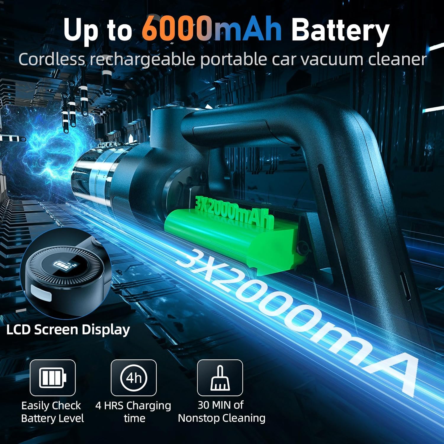 Car Vacuum Cleaner,21Kpa/30Mins,Mini High Power Pet Portable Handheld Cordless Vacuum Pro, Rechargeable Extractor Vacuum Detailing with Cleaning Gel for Car, Home and Office Detail Cleaning