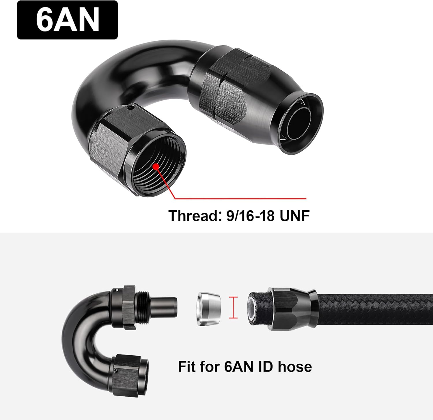 - [Product Size & Parameter] Size: 6AN. Thread Size: 9/16-18 UNF. Working Pressure: 1500PSI. Working Temperature Range: -40°F-250°F. Angle: 180 Degrees. Note: Please verify the hose size before purchase.