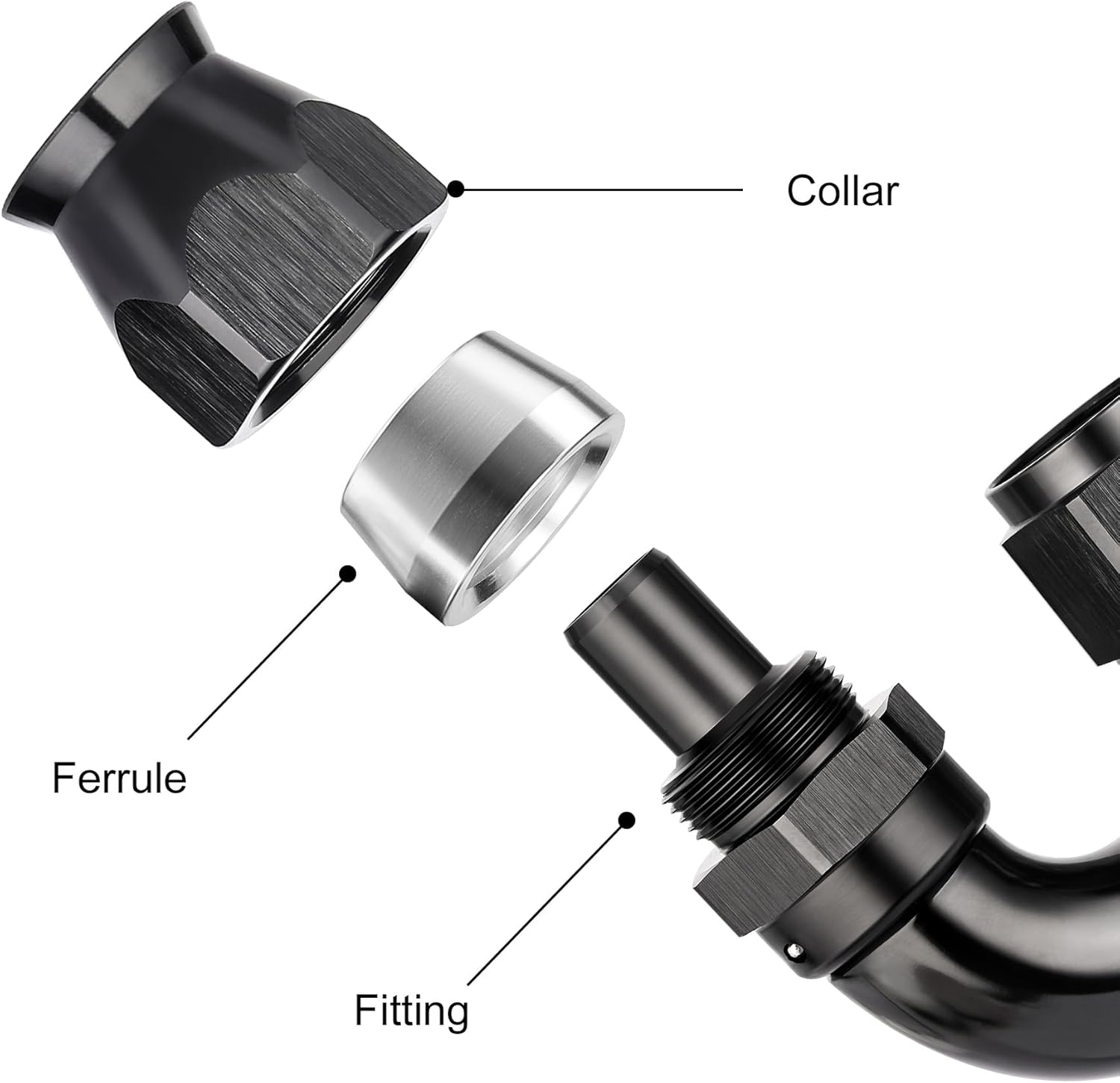 - [Built to Last] The one-piece PTFE hose end fitting is made from lightweight 6061-T6 aluminum alloy, and a black anodized finish on the surface increases durability, anti-corrosion, and wear resistance.