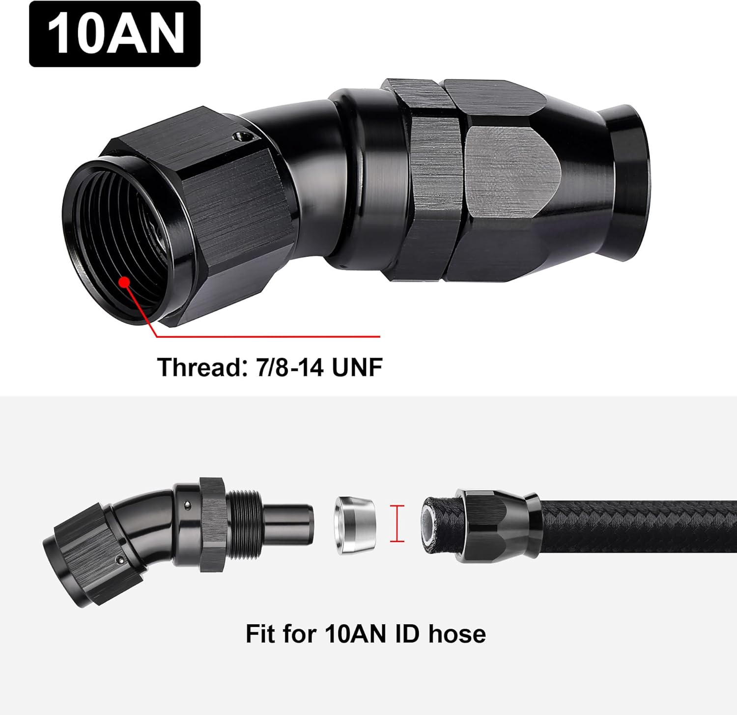 - [Application] These fittings are ONLY used with PTFE fuel lines for E85, alcohol, nitro, clutch, nitrous, power steering, oiling, hydraulics, and vacuum applications. A 360° swivel design allows for easy assembly.