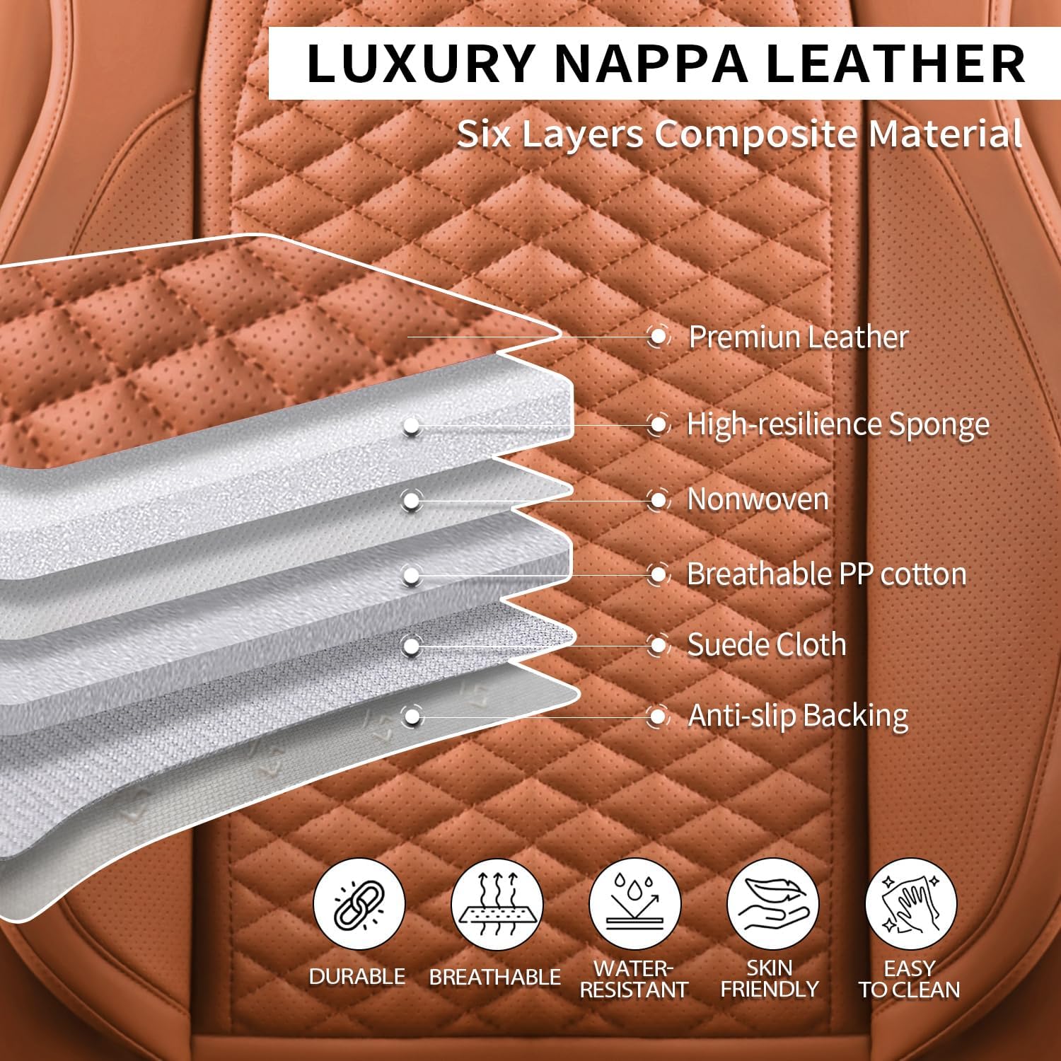- HIGH QUALITY MATERIAL: Car seat covers is made of artificial leather filled with high elasticity sponge inside, soft and comfortable, which can enhance driving comfort.