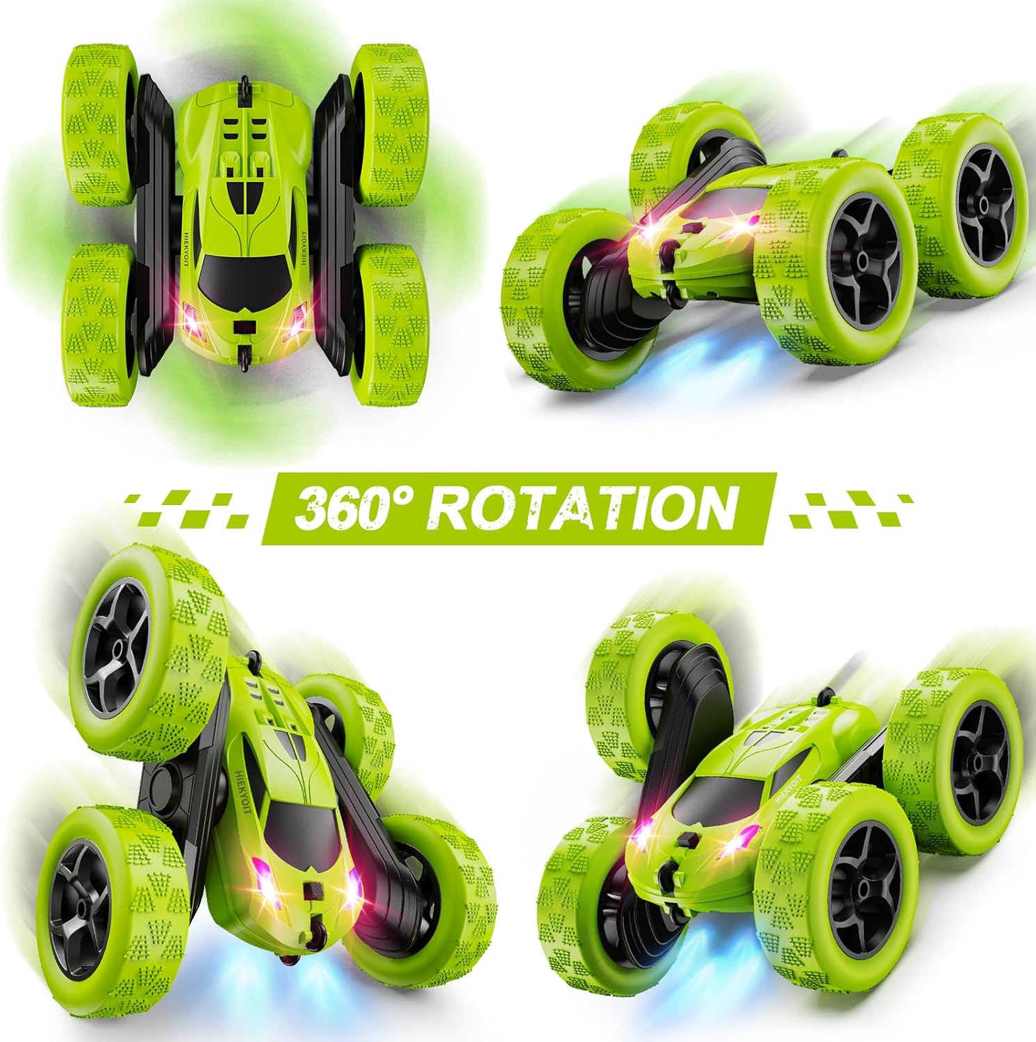 Remote Control Car for Kids Ages 6+, RC Cars Stunt Car Toy 4WD Double Sided 360° Rotating Remote Control with Headlights, Birthday Xmas Gifts for Boys 6 7 8 9 10 11 12 Green