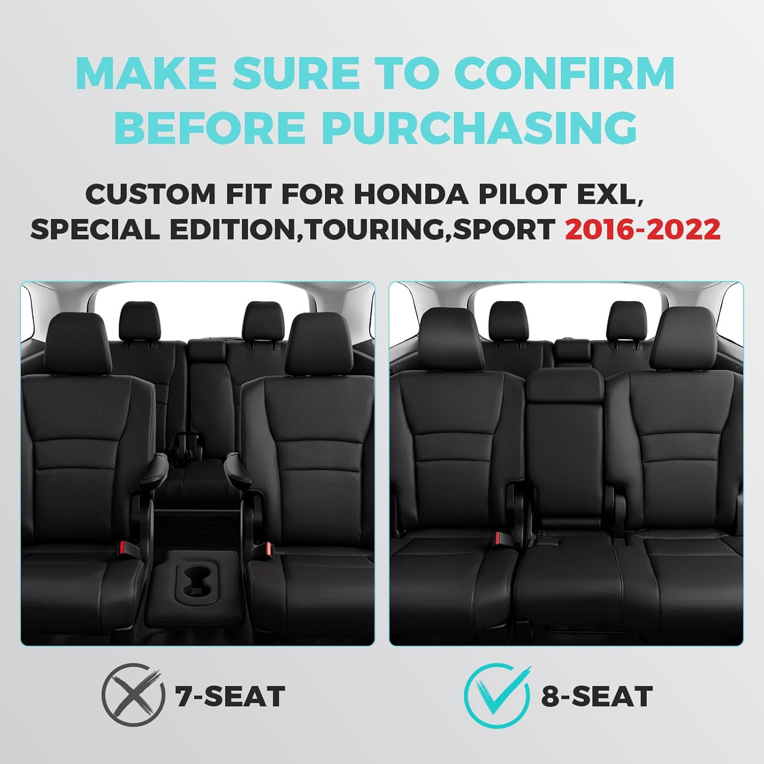 - 【Custom Fit Car Seat Covers】: Specifically designed for Honda Pilot seat covers 3 Rows, these fit the 2016 2017 2018 2019 2020 2021 2022 Pilot EX-L,SPECIAL EDITION,TOURING,SPORT models.
