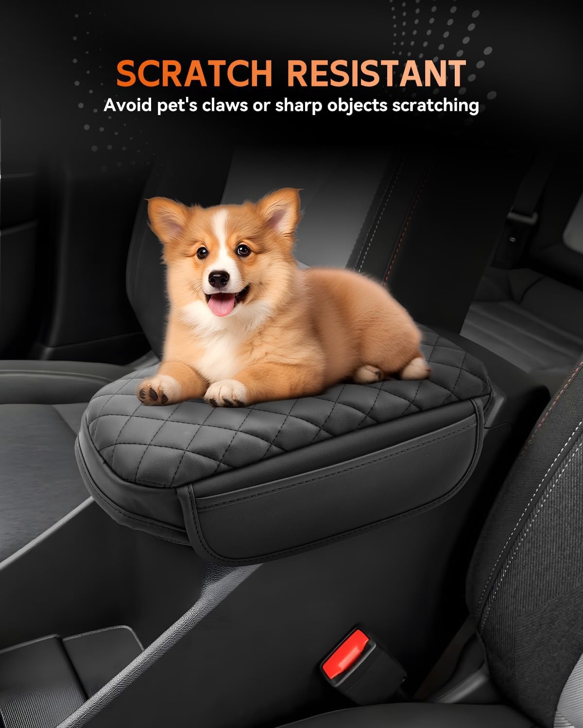 - [Easy To Install] Designed with a Velcro strap to secure it to the center console (no tools required). With super stretch and pull resistance, it will not change the open/close function of the armrest box.