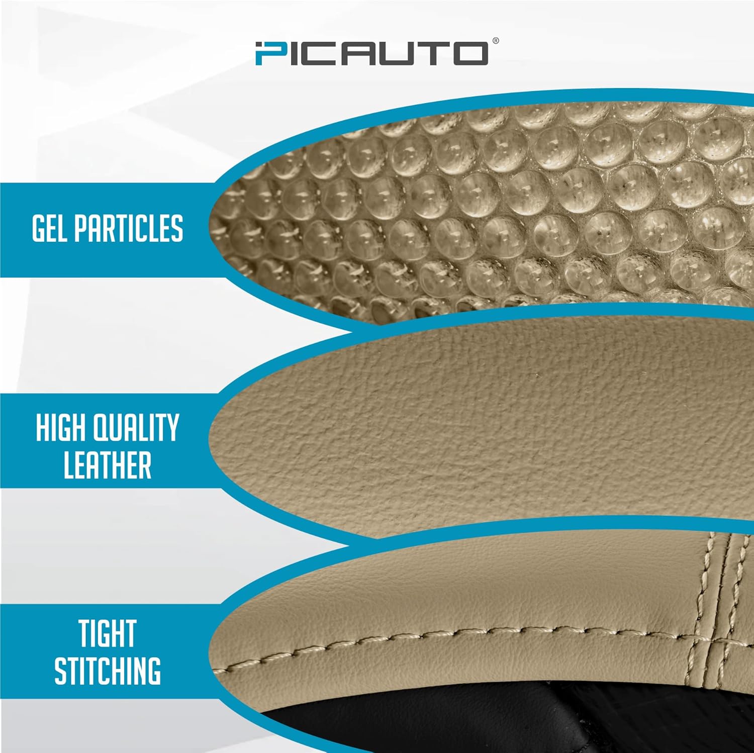 PIC AUTO Gel Particles Steering Wheel Cover, Beige Luxury Leather Car Steering Wheel Protector, Universal Fit 14.5"-15.5" Anti-Slip Car Interior Accessories for Girls & Women