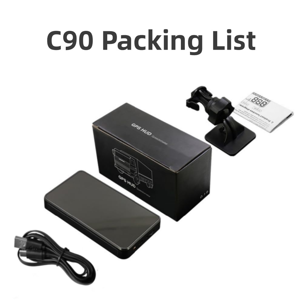 - 【9-in-1 HUD】Heads up display, it has multifunctions - Vehicle driving speed, Driving time, Driving mileage, Total mileage, Over-speed alarm, Fatigue driving warning, Local time, Altitude, freely switch between kilometers and miles.