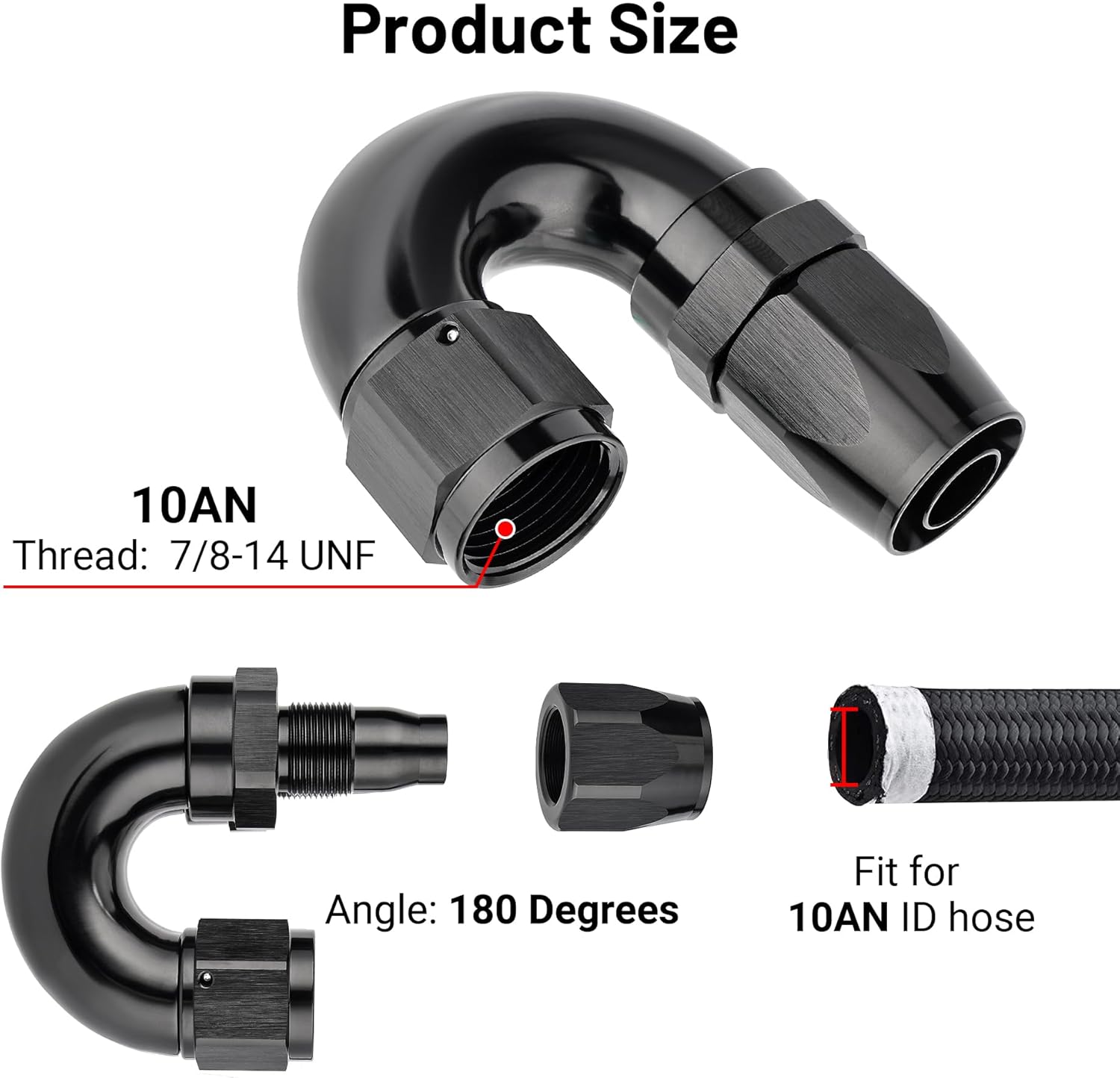 EVIL ENERGY 10AN 180 Degree One Piece Full Flow Hose End Fitting Swivel For CPE Braided Hose