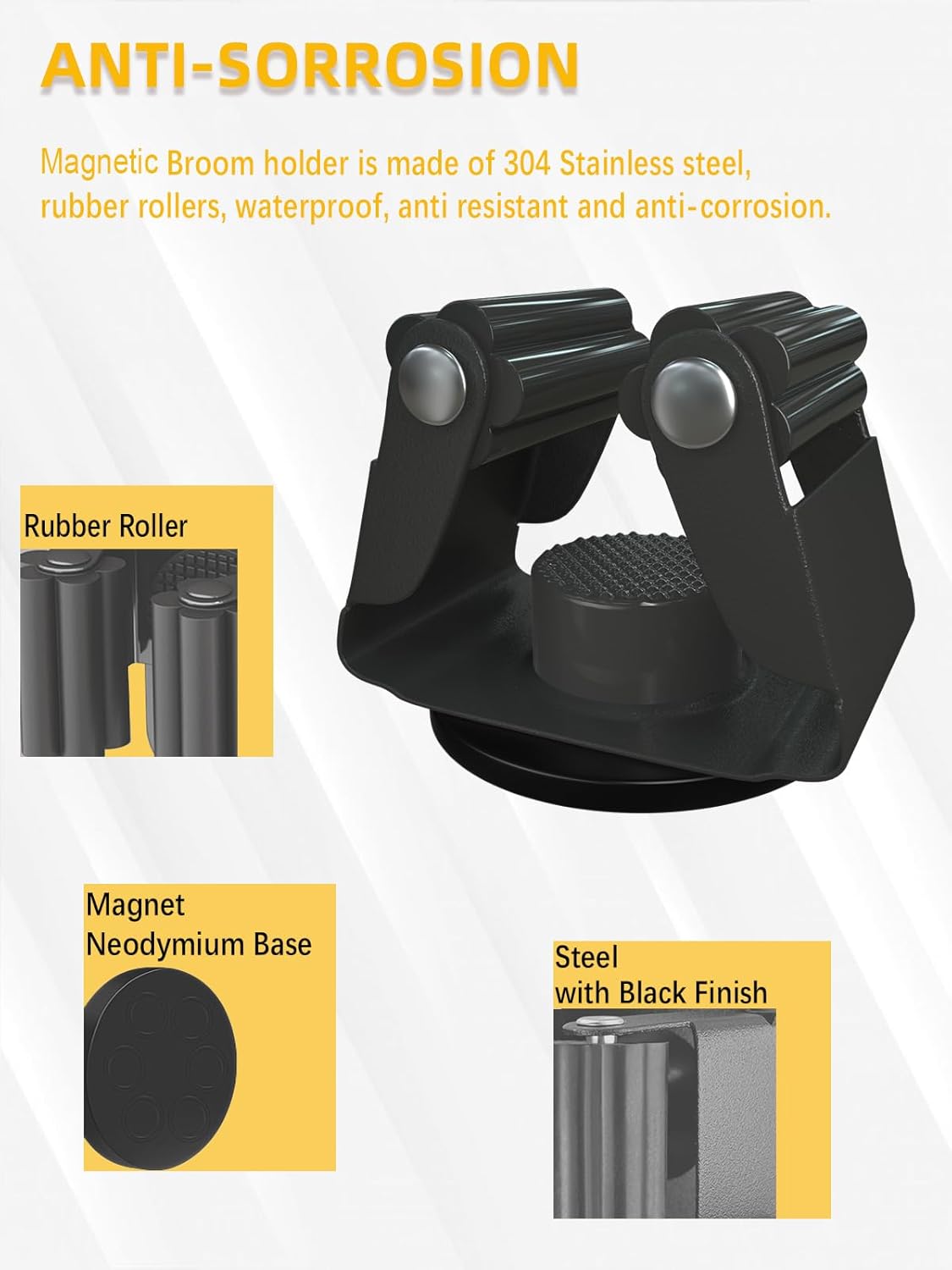 - Quality Build: Mop holder magnetic made of steel frame with rubber rollers, lightweight and sturdy, durable enough to withstand harsh conditions, like rainy, snowy, salty environment